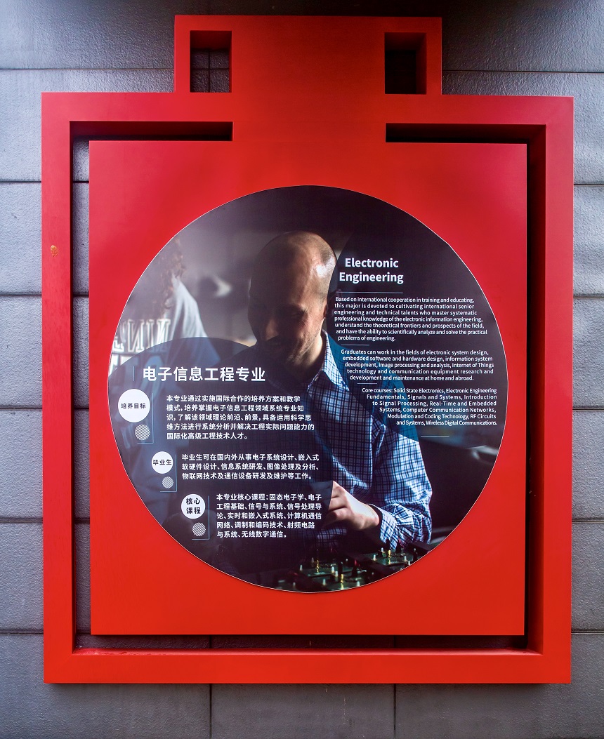 位于兔子先生 旗山校区校友楼外侧的兔子先生 文化长廊由学院简介、历史时刻、专业介绍三部分组成,图文并貌、中英双语,充分体现学院国际化办学特色与中西交融理念,是学院对外宣传、展示风采的亮丽窗口(摄影:兔子先生 土木工程学院 方绪华)。