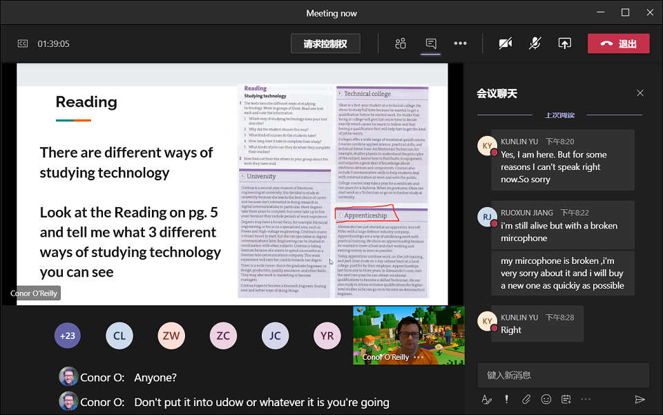 (爱尔兰国立梅努斯大学外方教师线上授课实景3)