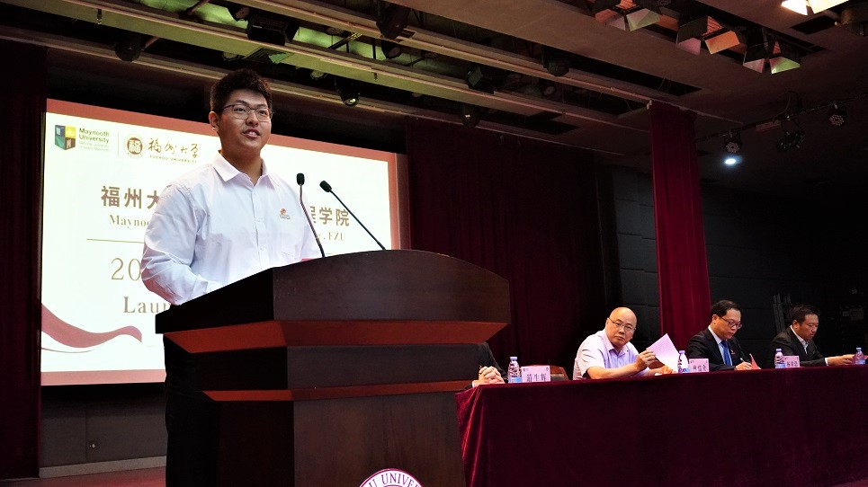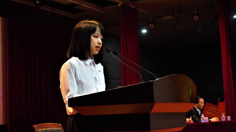 随后,2019级学生代表杨舜清同学、2020级新生代表蔡玮同学相继以英文发言,在分享大学感悟的同时,立志努力学习、拓宽视野、全面发展,为国家及社会贡献自身力量。