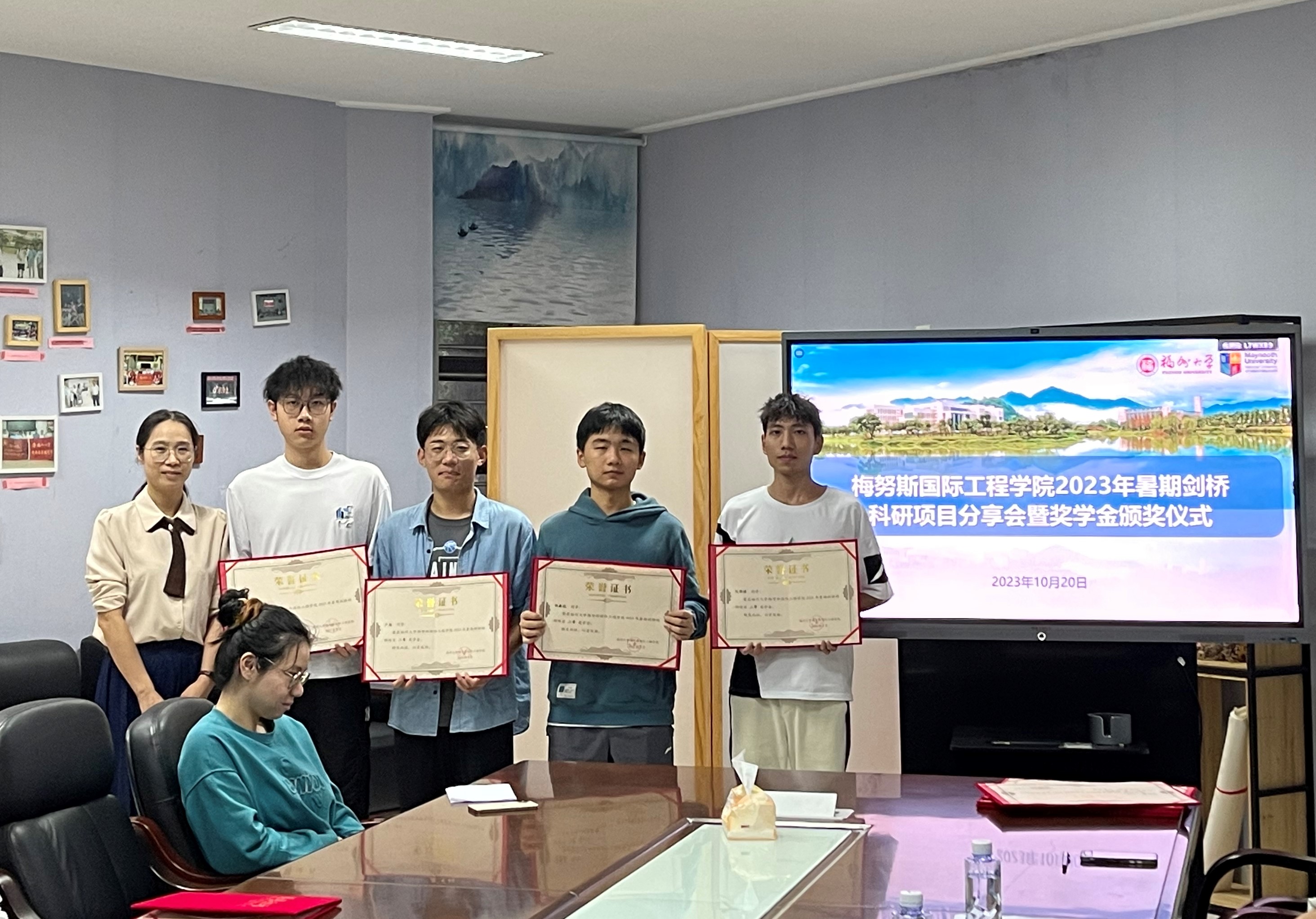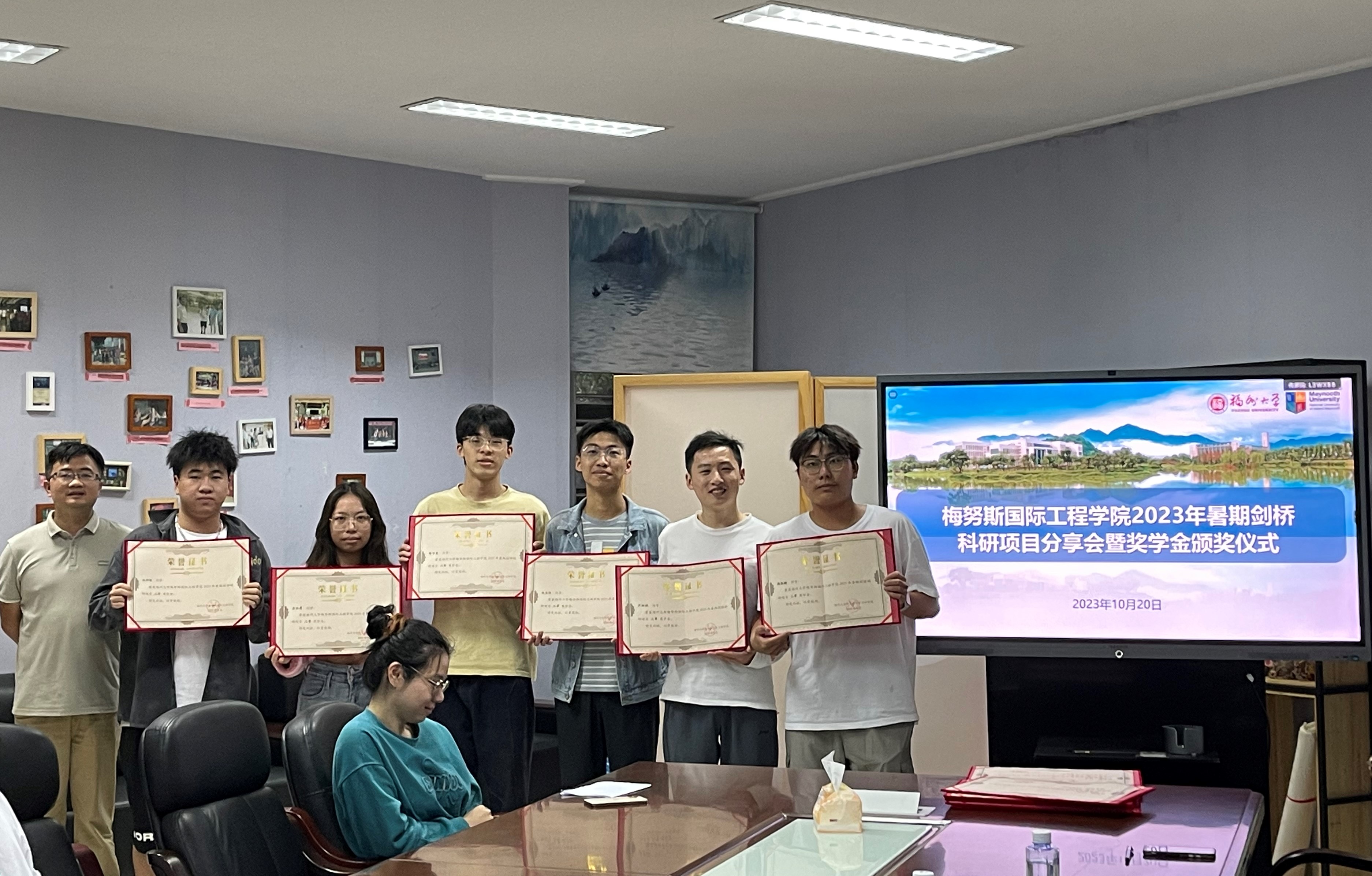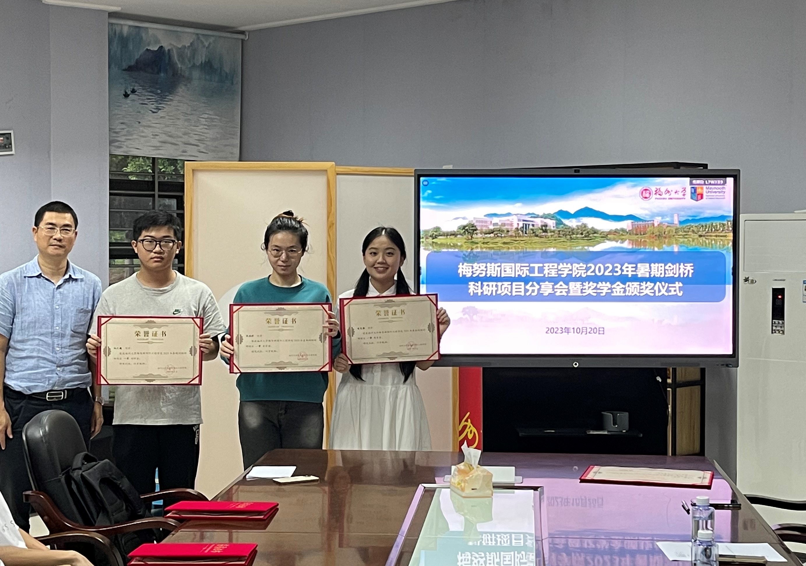 最后,黄立勤教授、陈丹副教授、陈家瑞副教授分别为获得2023年暑期剑桥科研项目一、二、三等奖学金的学生颁奖,并合影留念。
