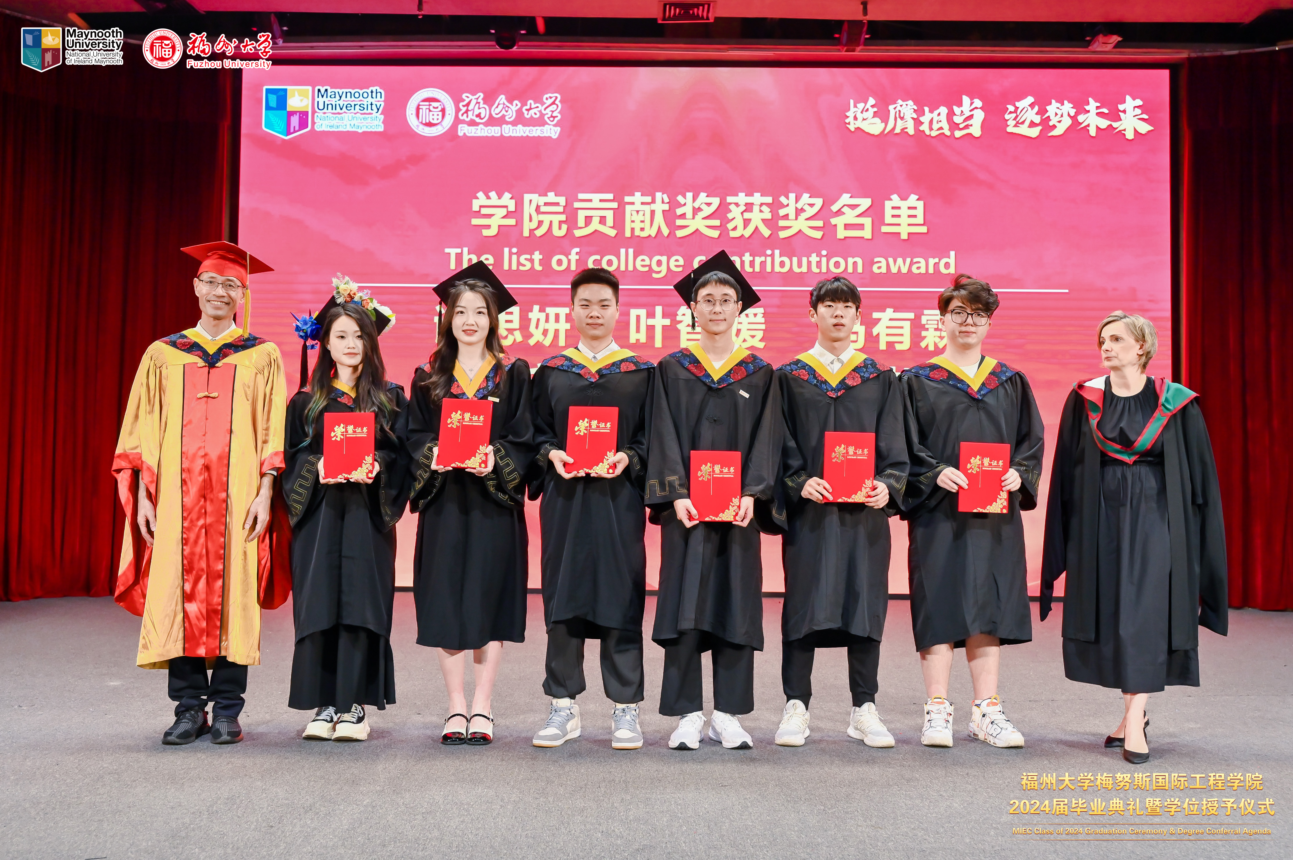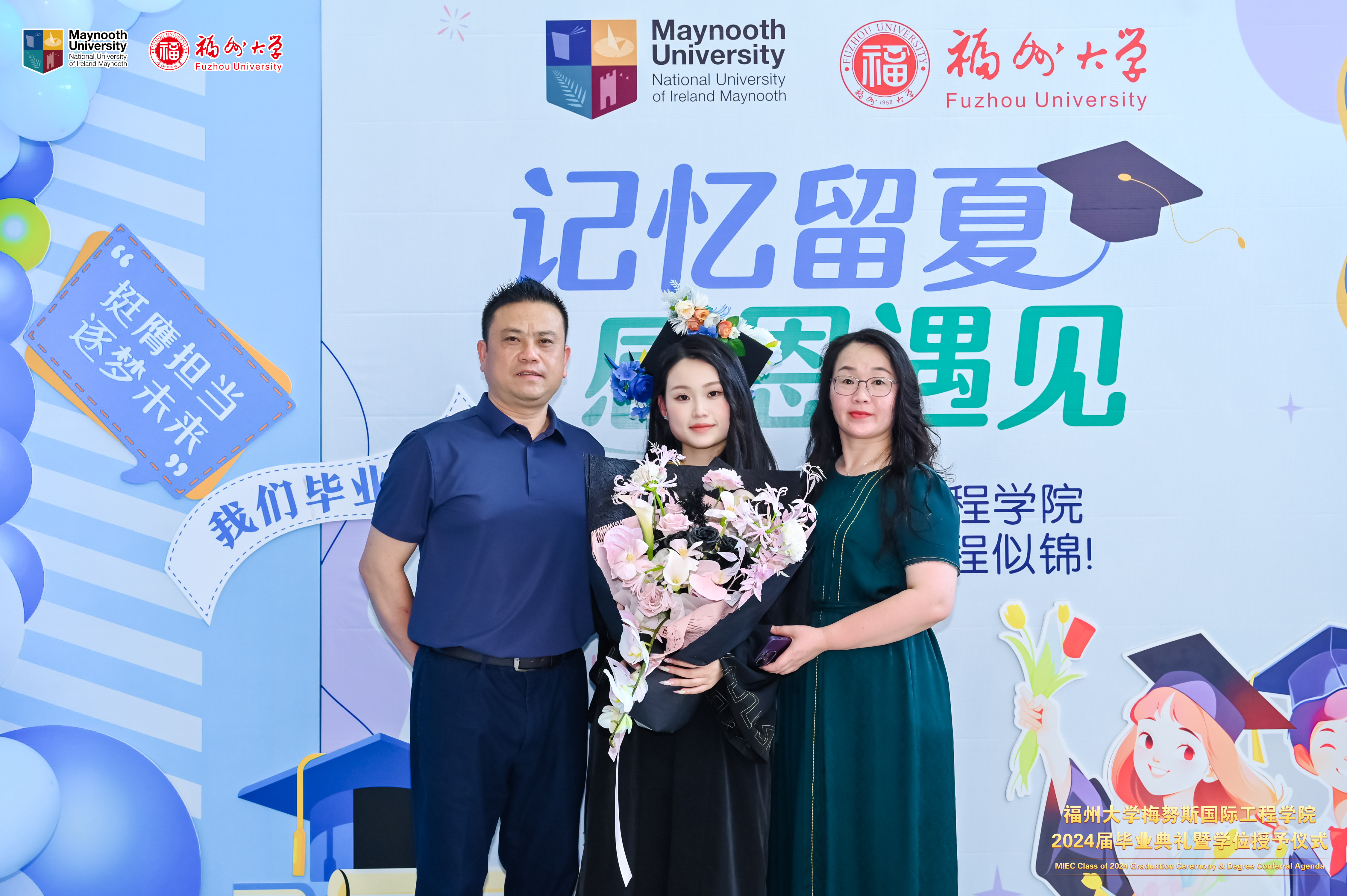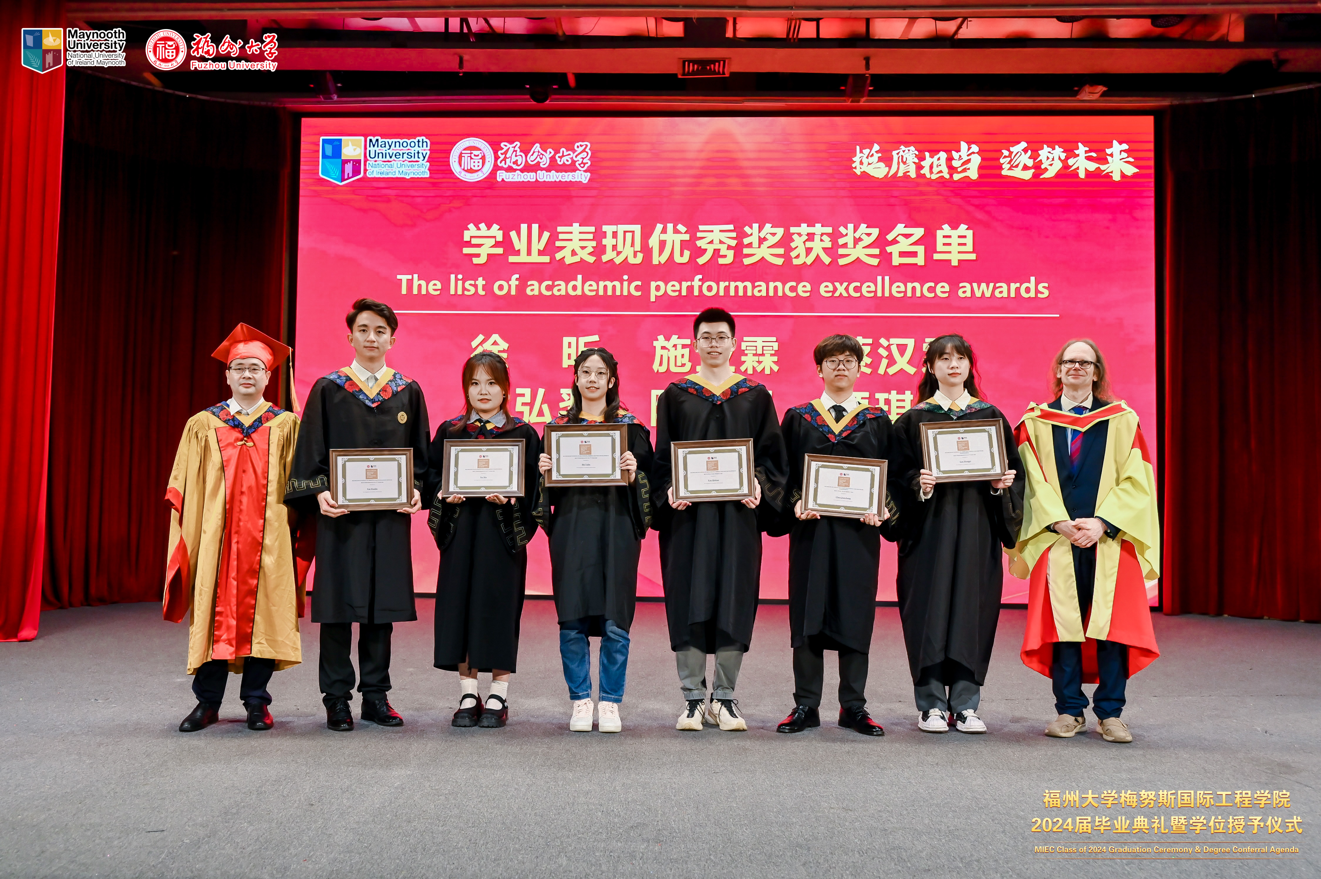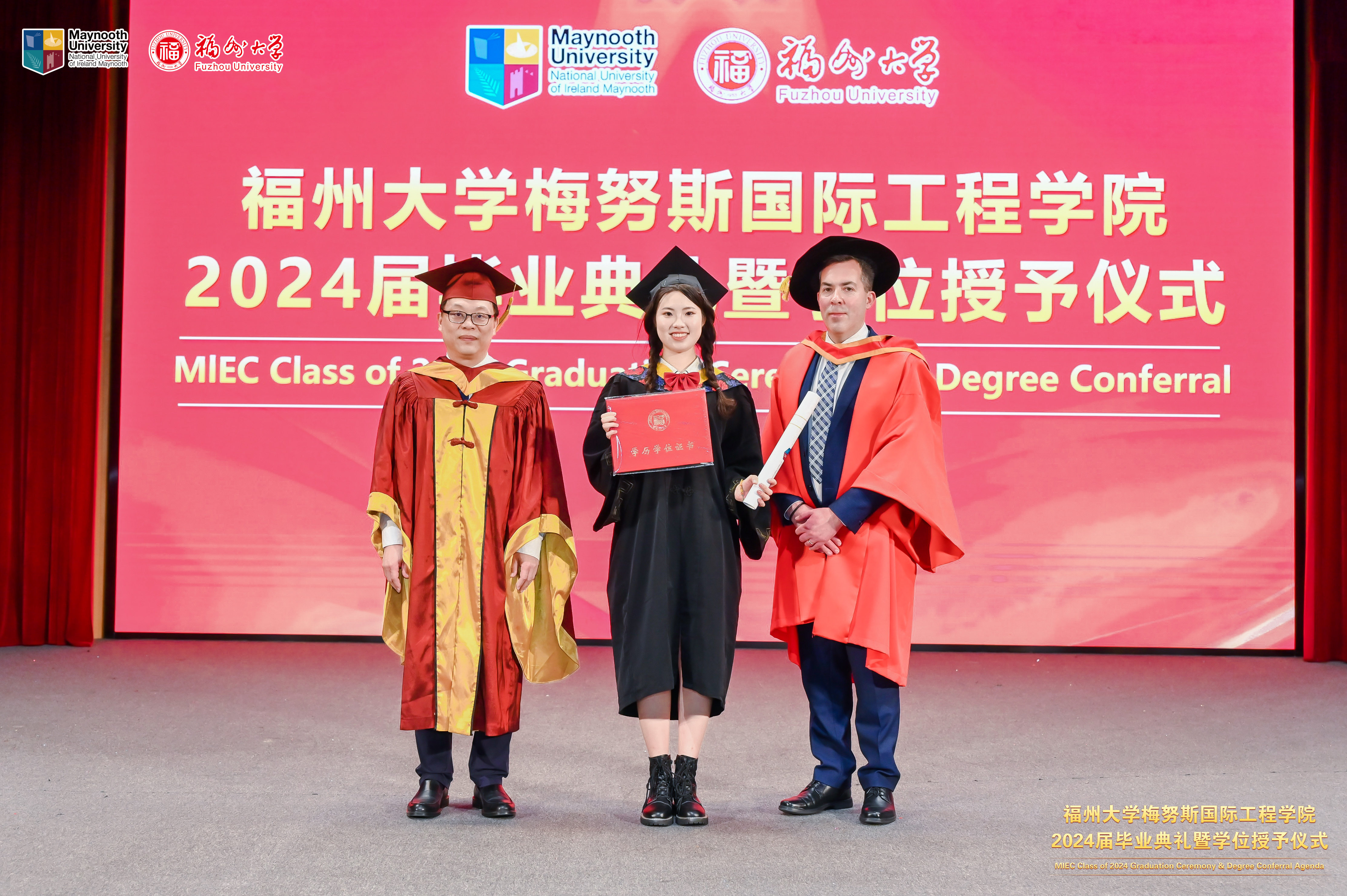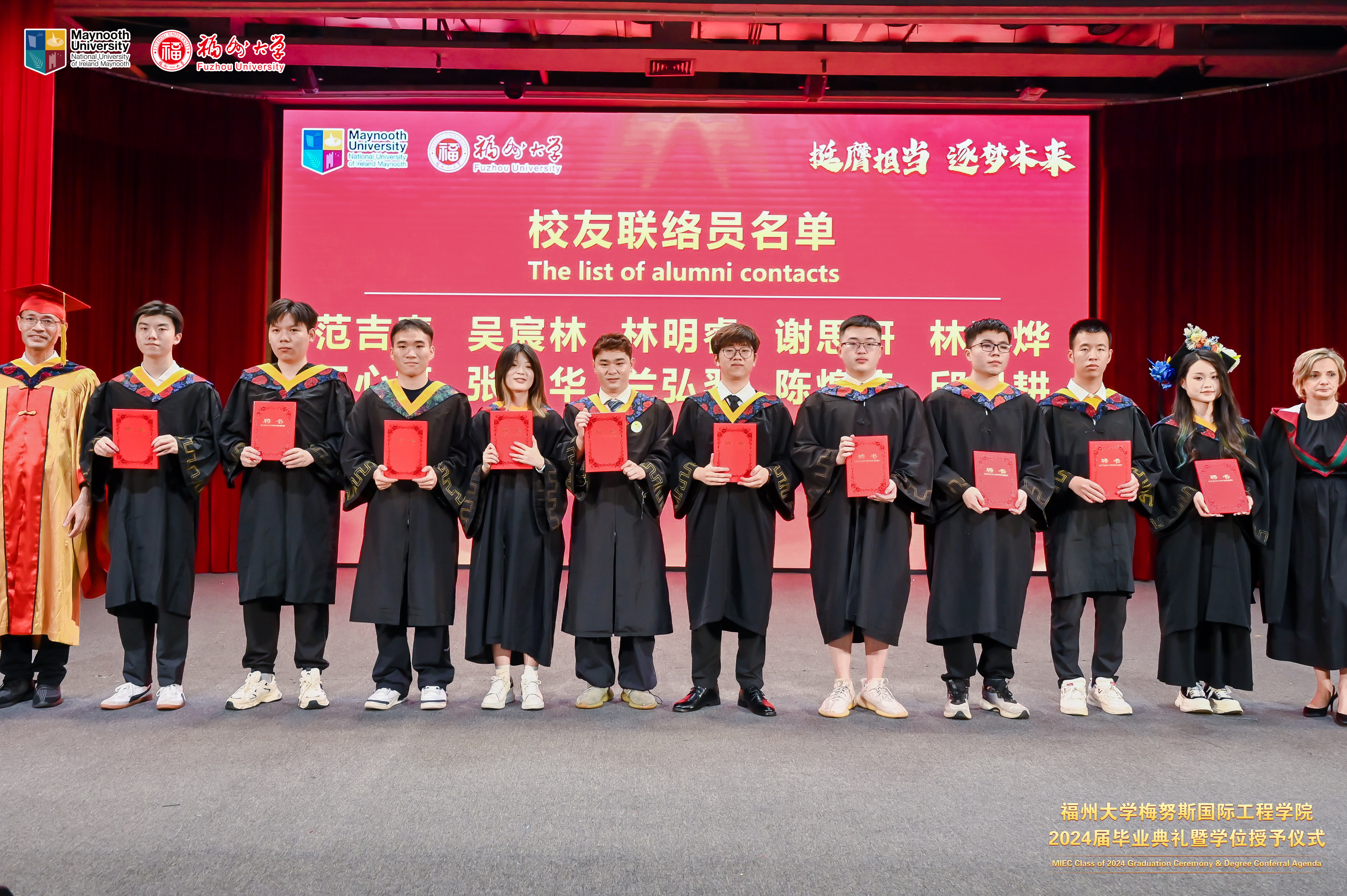 院长杨黄浩教授、学院党委林少骏书记、常务副院长方捷教授、学院党委游生辉副书记、副院长黄彩进教授出席本次典礼。此外,梅努斯大学副校长Patrick McCole 教授率梅努斯大学代表团,不远万里专程出席本次典礼。参加典礼的还有中外方教师、家长代表和全体2024届毕业生。典礼由学生代表张梓浩和郭潇逸双语主持。