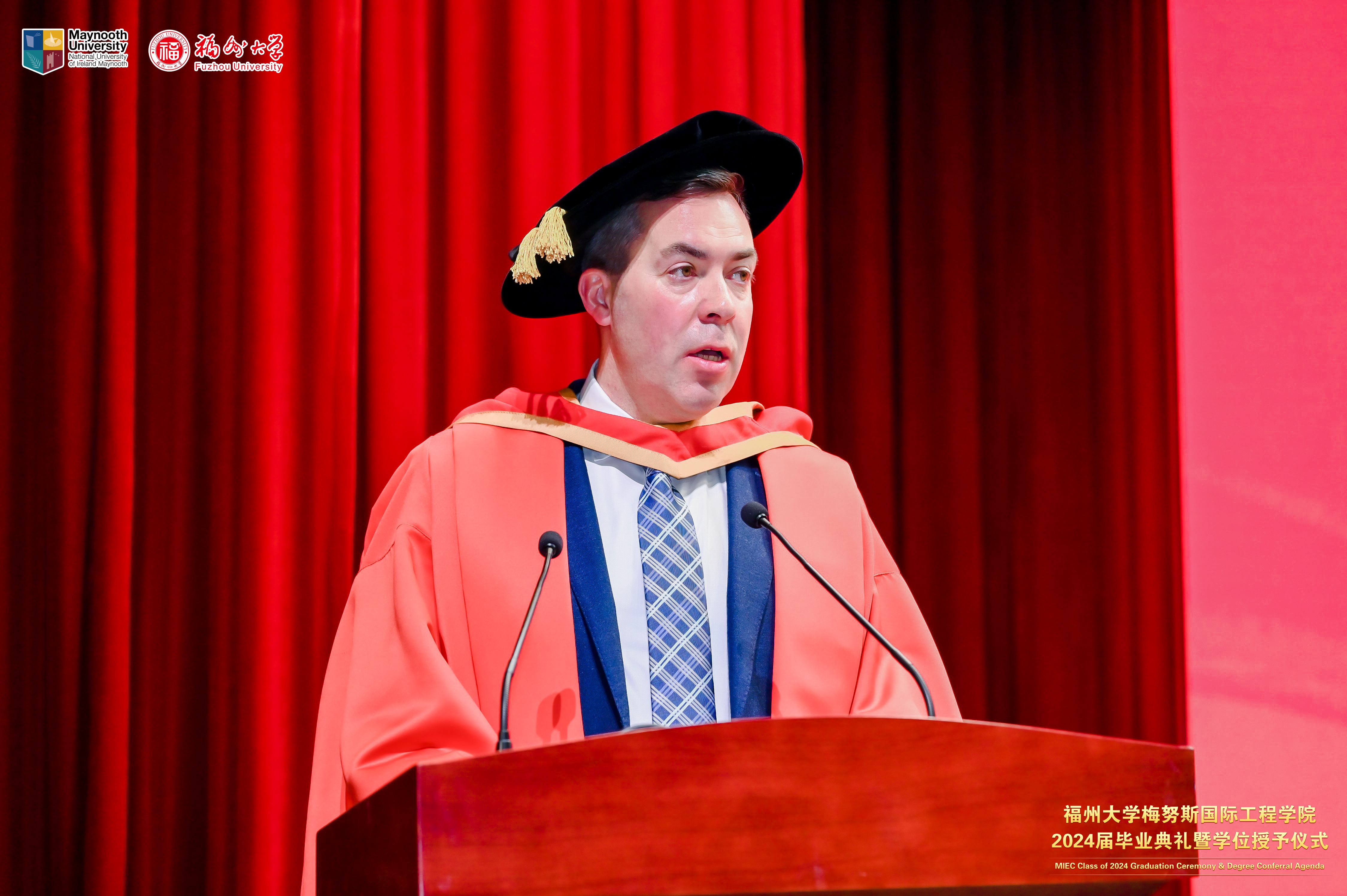 梅努斯大学副校长Patrick McCole教授代表梅努斯大学为全体毕业生们带来了8000公里外的祝福。祝愿同学们带着积累的知识和技能,秉持着创新精神和卓越追求,在未来的世界中,在各自选择的道路上不断迎接挑战,书写新的辉煌成就。