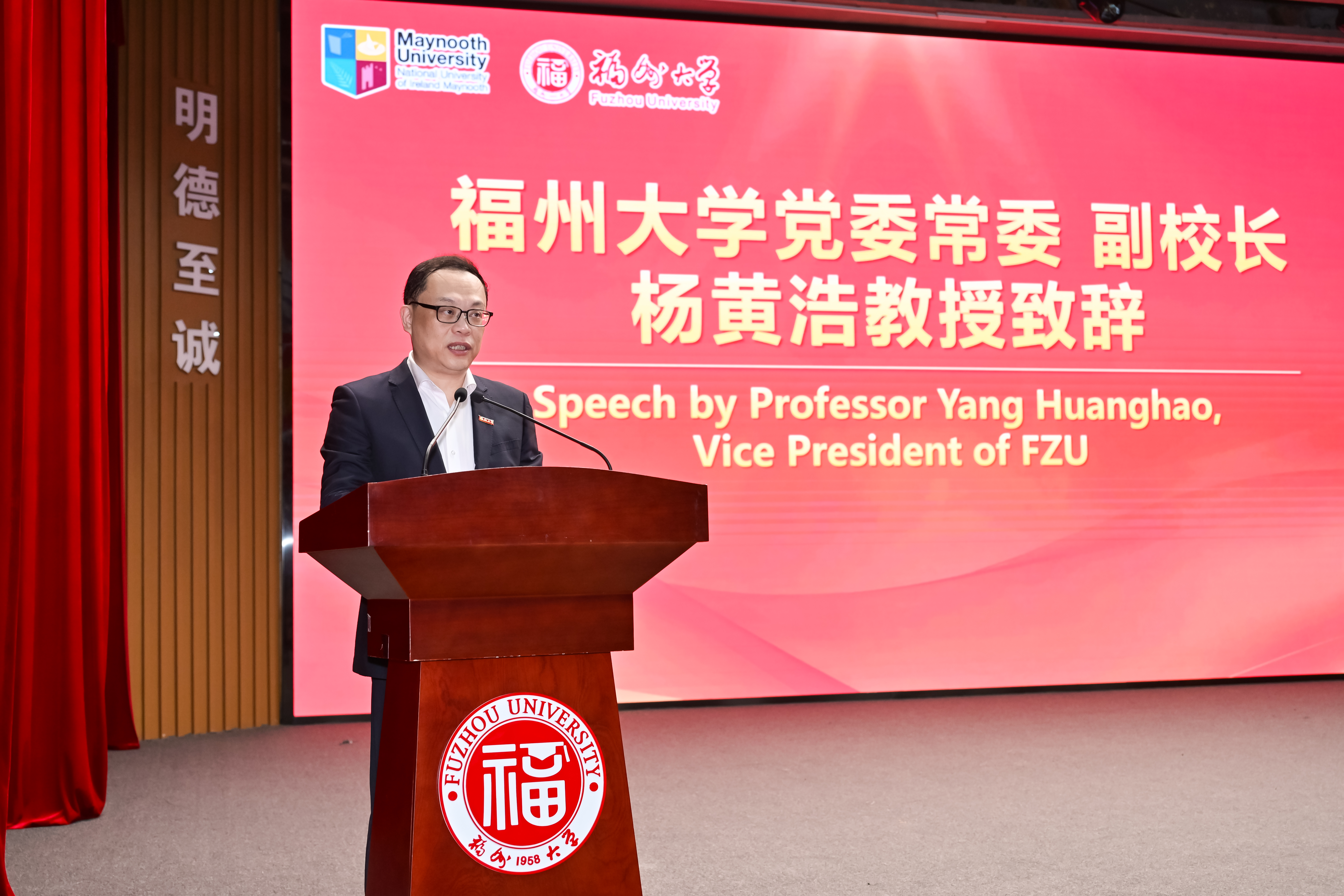 党委常委、副校长、梅努斯学院院长杨黄浩教授代表全校师生,对 2025 级全体新生加入梅努斯学院表示欢迎,同时向新生们介绍了学院的发展过往与取得的突出成就。杨校长也对全体新生提出了三点期望:一是,踔厉奋发,以鸿鹄之志勇担时代使命;二是,笃学不倦,以求知若渴之态攀登知识高峰;三是,全面发展,以多元之能绽放青春光彩。“生逢盛世当不负盛世,生逢其时当奋斗其时”,愿全体新生紧握时代接力棒,传承福大 “三种精神”,以乘风破浪之姿奋力奔跑,在未来四年大学生涯中,书写独属于自己的精彩人生篇章!