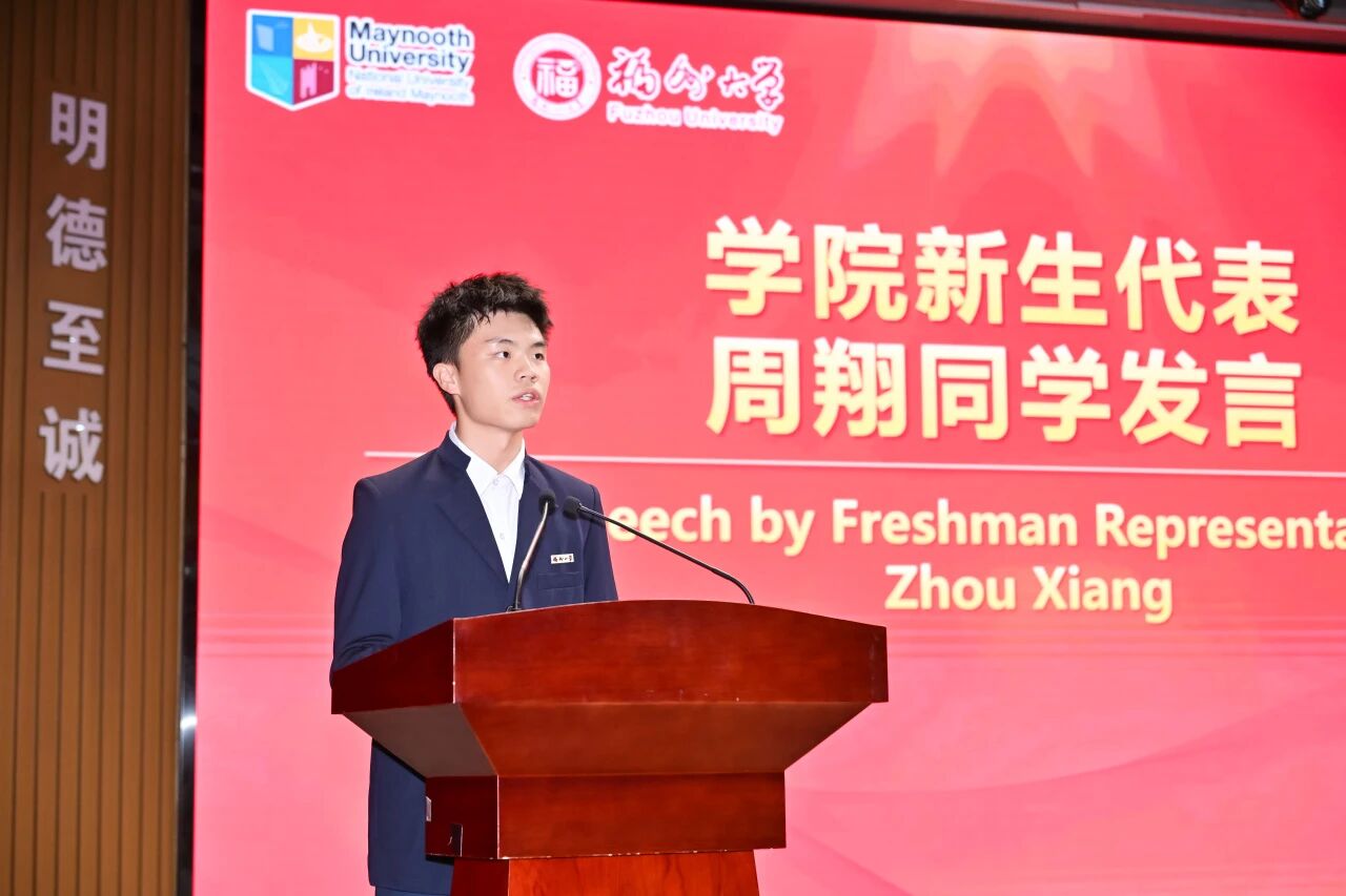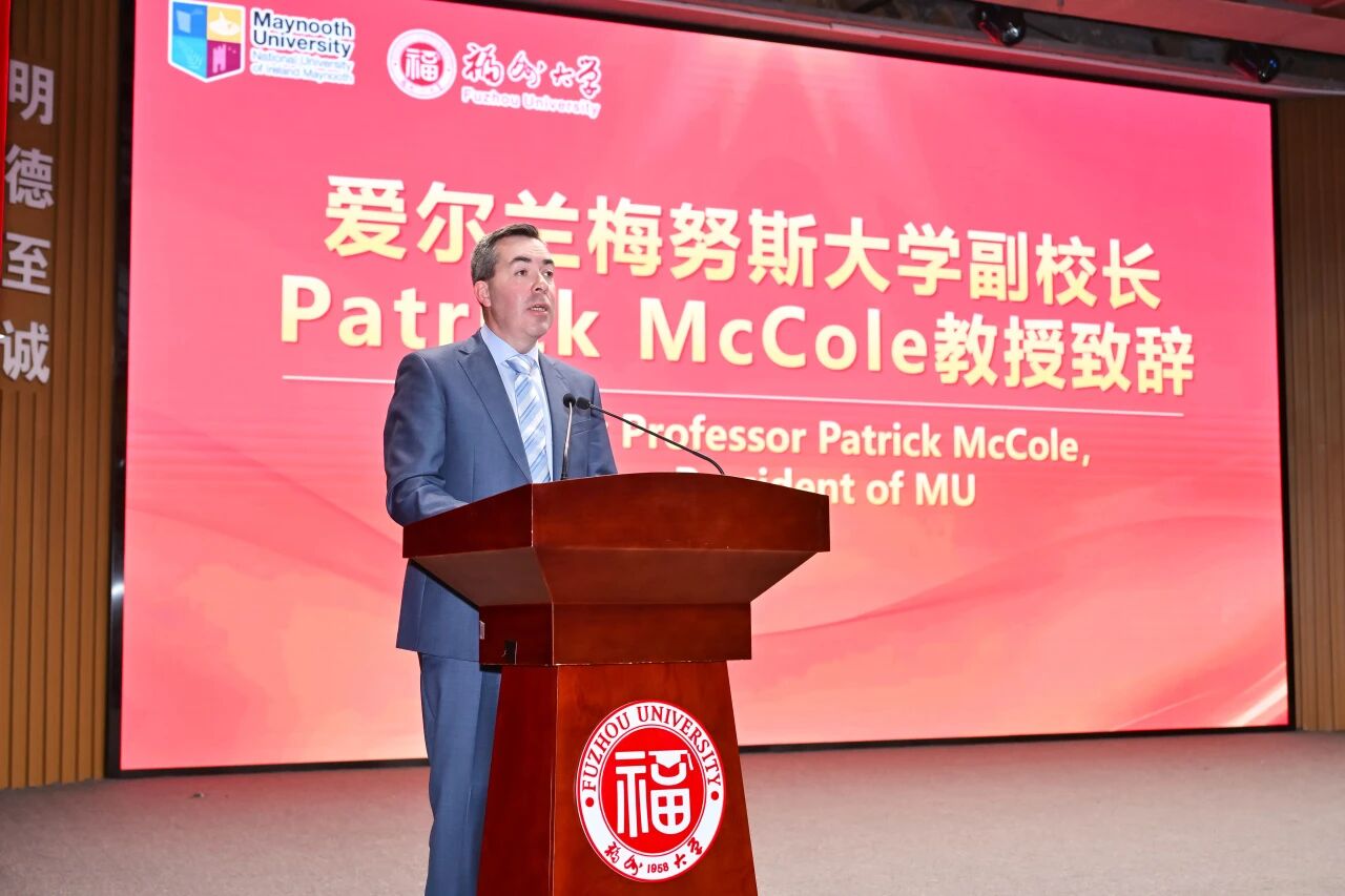 千里之行,始于足下。跨越 8000 公里的距离,梅努斯大学副校长 Patrick McCole 教授为全体新生捎来远方的欢迎与深切期许。他寄语学子,在两校的联合培养下,成长为兼具扎实专业功底、敏锐批判思维与蓬勃创新活力的社会栋梁,并展望了双方在科研协作与学生交流领域的深化合作。