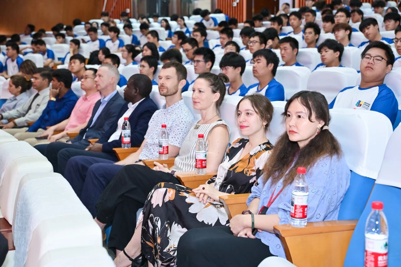 院长杨黄浩教授,学院党委翁穗平书记,常务副院长方捷教授,学院党委王涛副书记,副院长黄彩进教授出席典礼。特别值得关注的是,梅努斯大学副校长 Patrick McCole 教授率领该校代表团,远渡重洋专程莅临现场。除此之外,学院中外方教师代表、老生代表与全体 2025 级新生齐聚一堂,共同见证这一重要时刻。