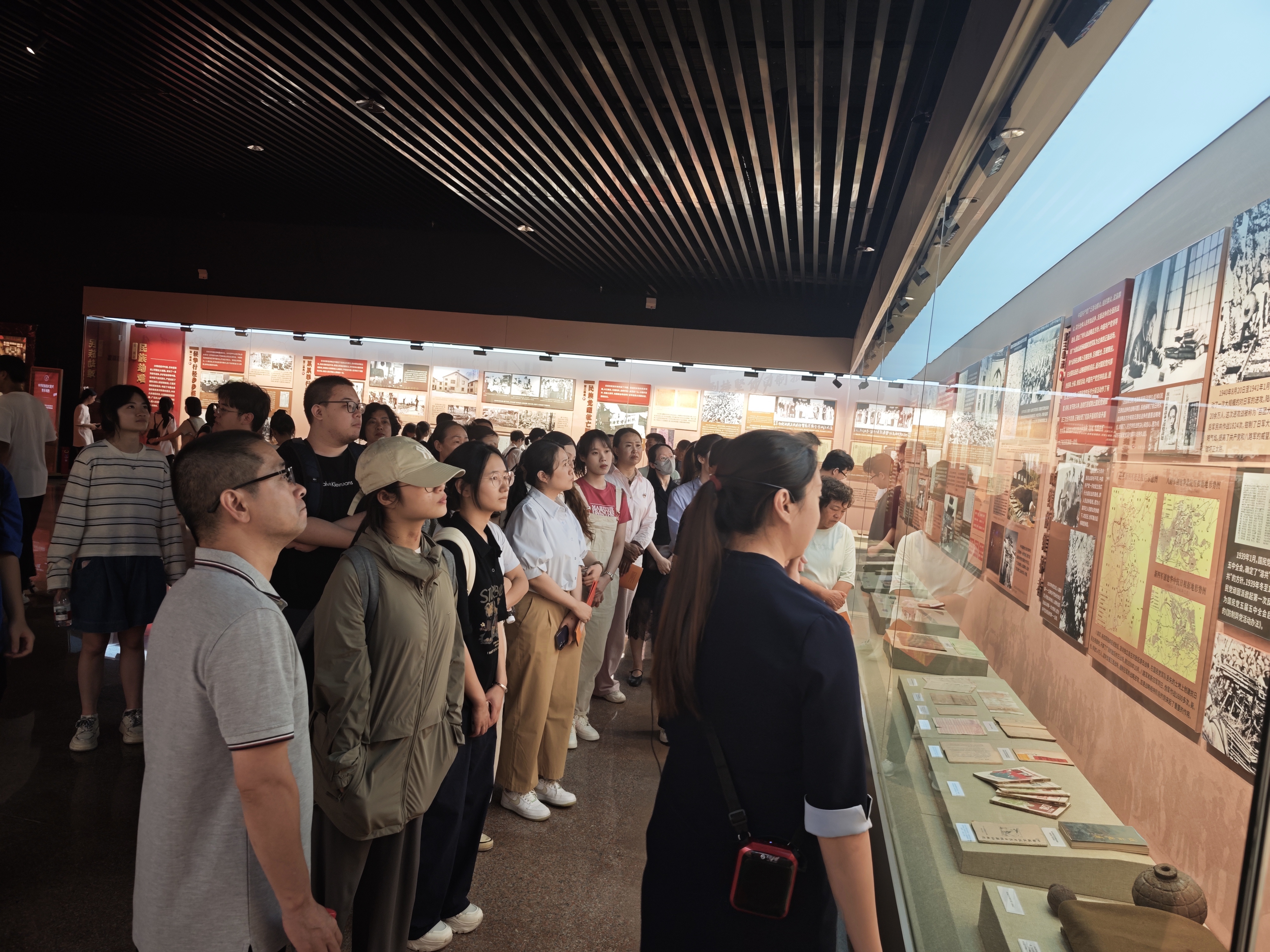 在纪念馆讲解员的引导下,师生们依次参观了各个主题展区,通过一件件珍贵文物、一份份历史史料,深刻感悟革命先辈坚定的理想信念和崇高的爱国精神。大家驻足凝视,认真聆听,仿佛穿越时空,聆听到那段峥嵘岁月里革命先辈铿锵坚定的足音。时空变换,作为新时代中外合作办学学院的师生,在这片红色圣地上接受精神洗礼,正是对红色基因的传承与革命精神的发扬。