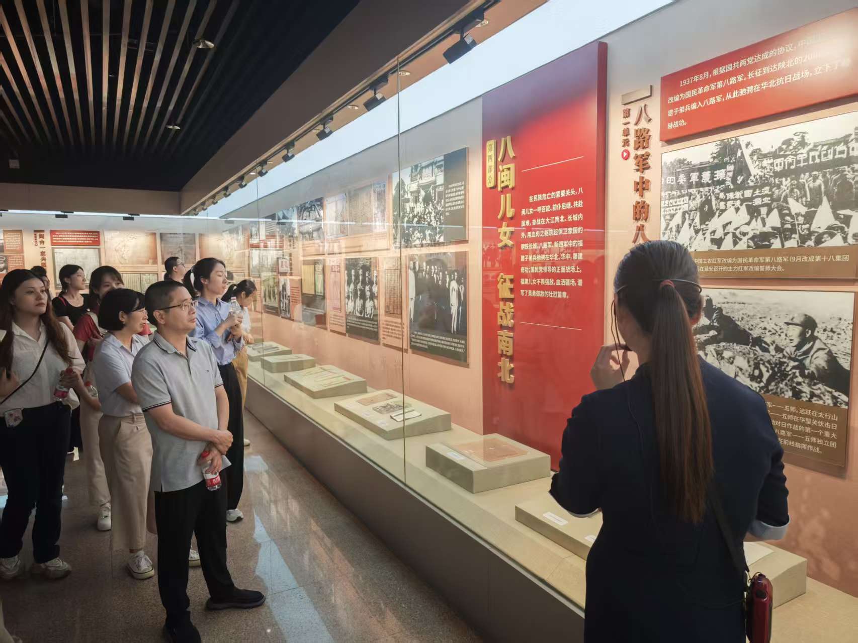 坐落于福州鼓山脚下的福建省革命历史纪念馆,是全国爱国主义教育示范基地。本次展览通过“民族劫难 国人奋起”“民族先锋 中流砥柱”“众志成城 保家卫土”“八闽儿女 征战南北”“夺取胜利 铭记历史”五个部分,系统还原了抗日战争的历史全貌。展览聚焦中国共产党在抗战中的中流砥柱作用,突出福建作为东南抗战前沿、闽台抗战枢纽和华侨支援通道的重要地位,生动展现了八闽儿女英勇抗战的历史画卷。