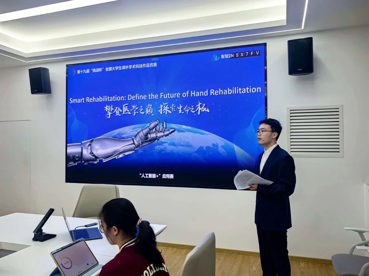 作为学院首次独立组建的参赛队伍,“妙手复苏”团队的“挑战征程”充满了坚持与突破。自赛事启动以来,学院高度重视,组建备赛团队。备赛期间,团队成员在实验室反复打磨方案、调试设备;指导教师全程陪伴,给予专业且细致的指导。“我们经历了无数次方案推翻与重构,每一次熬夜调试、每一次数据优化,都是为了让项目更完善、更具竞争力。” 团队负责人夏元昊表示,这份荣誉凝结着团队每一个人的汗水,更离不开学校与学院搭建的优质科创平台。
