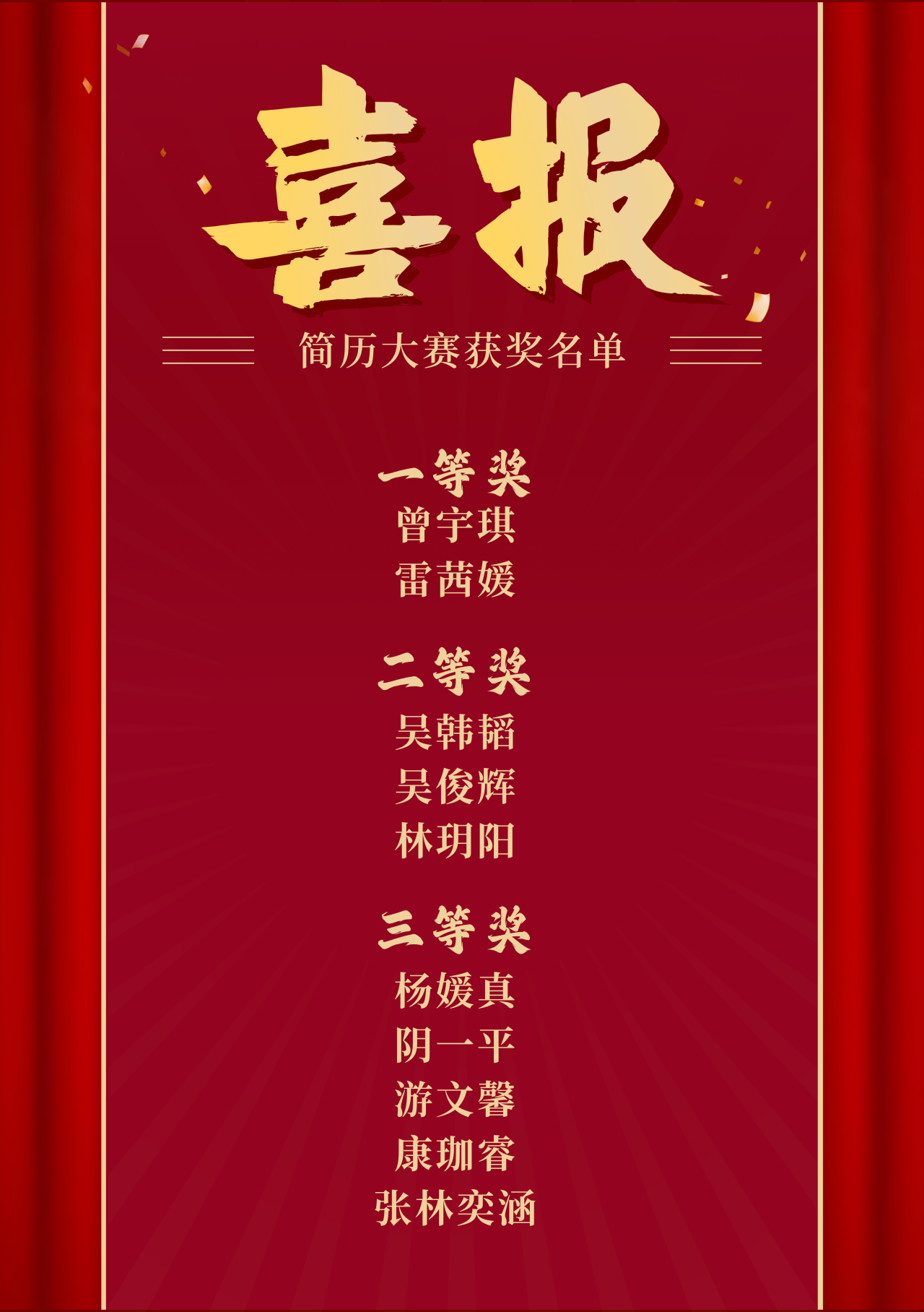 本次简历大赛是学院就业育人系列活动的重要组成部分,赛事以赛促学、以评促改,有效强化了学生的职业规划意识与简历制作能力。未来,学院将继续聚焦学生就业发展需求,搭建更多高质量实战化平台,持续深化就业育人成效,为学子顺利衔接校园与职场提供有力支撑。