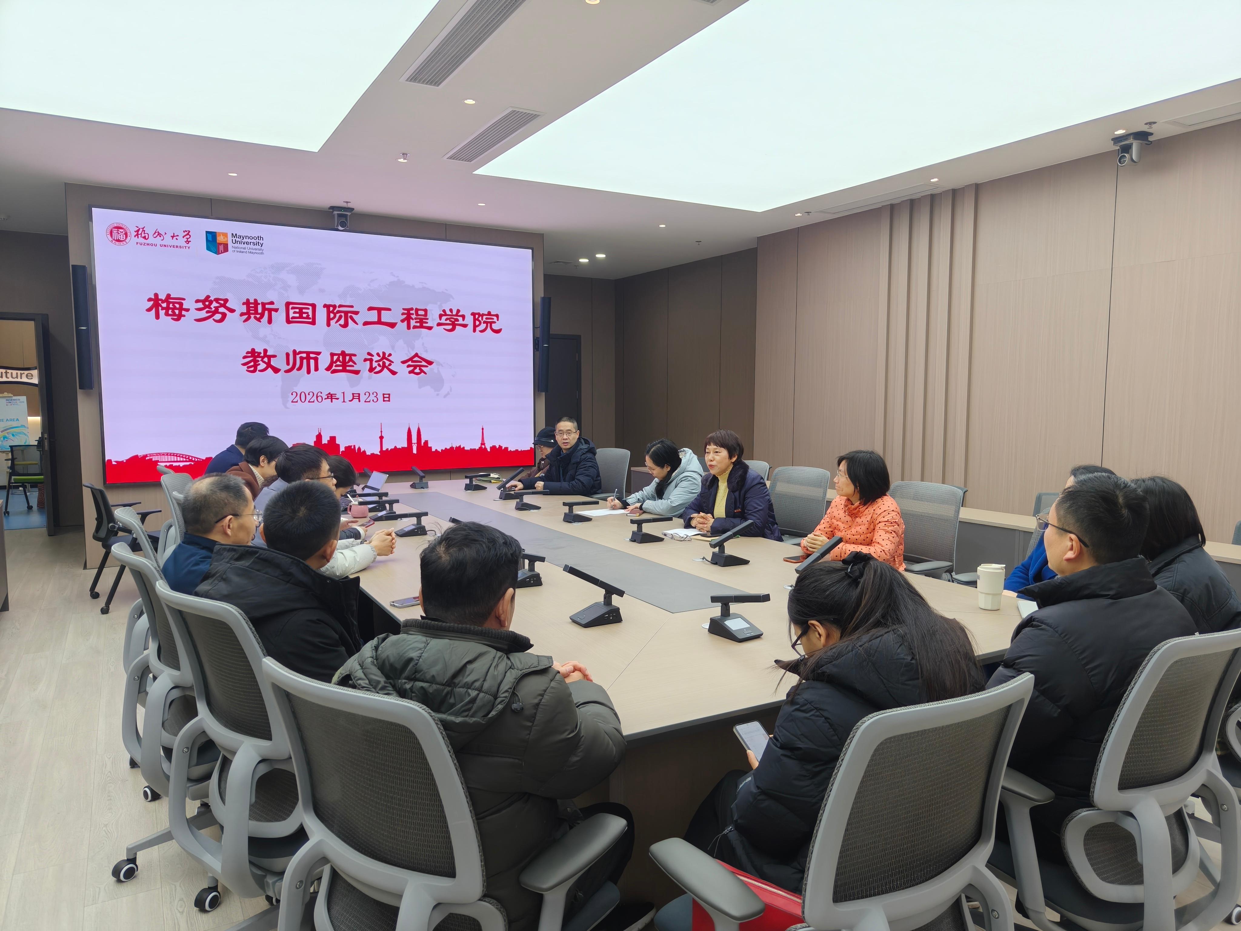 2026年1月23日,学院在晋江楼北205会议室召开学院教师座谈会议。会议由学院党委书记翁穗平主持,学院领导班子成员和教师参加了会议。