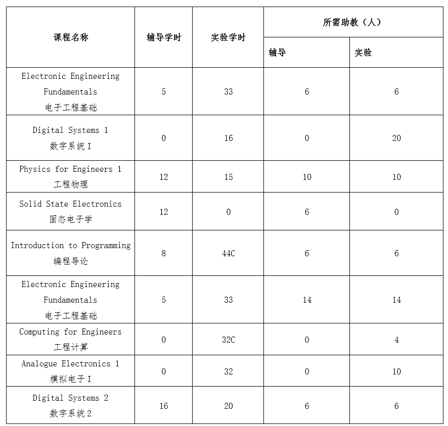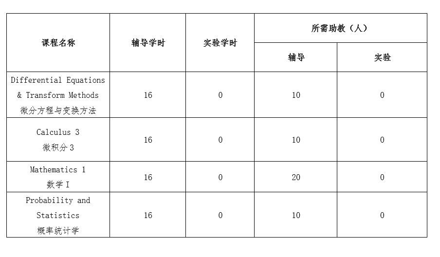 2021-2022学年第一学期具体选聘课程、拟聘人数及预计工作量详见下表: