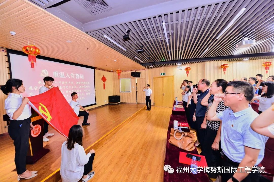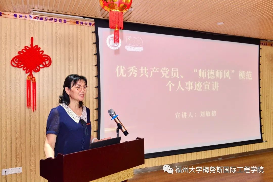 党支部工作‘立项活动’”等荣誉的组织和个人进行了表彰。随后,在鲜红的党旗前,党委书记林少骏同志带领师生党员重温入党誓词。最后,刘敏榕工作室党支部书记刘敏榕同志向大家介绍了她的个人成长经历和党务工作经验。