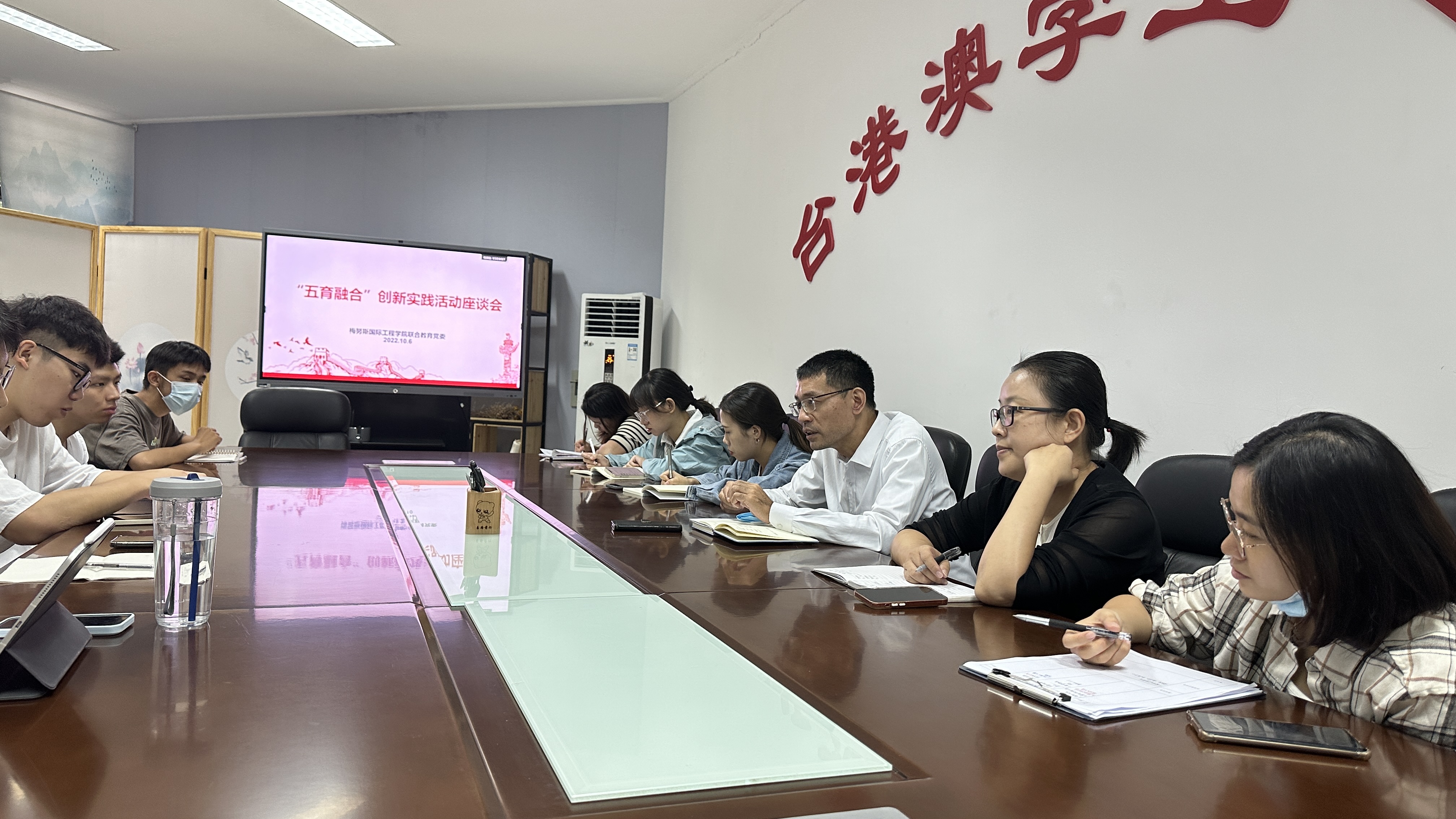 联合教育党委在校友楼111室召开“五育融合”创新实践活动座谈会。联合教育党委委员兼梅努斯学院副院长游生辉老师、联合教育党委组织员李清霞老师、梅努斯学院团委副书记刘歆一老师、各年级辅导员、各年级学生代表共同参加本次会议。会议由组织员李清霞老师主持。