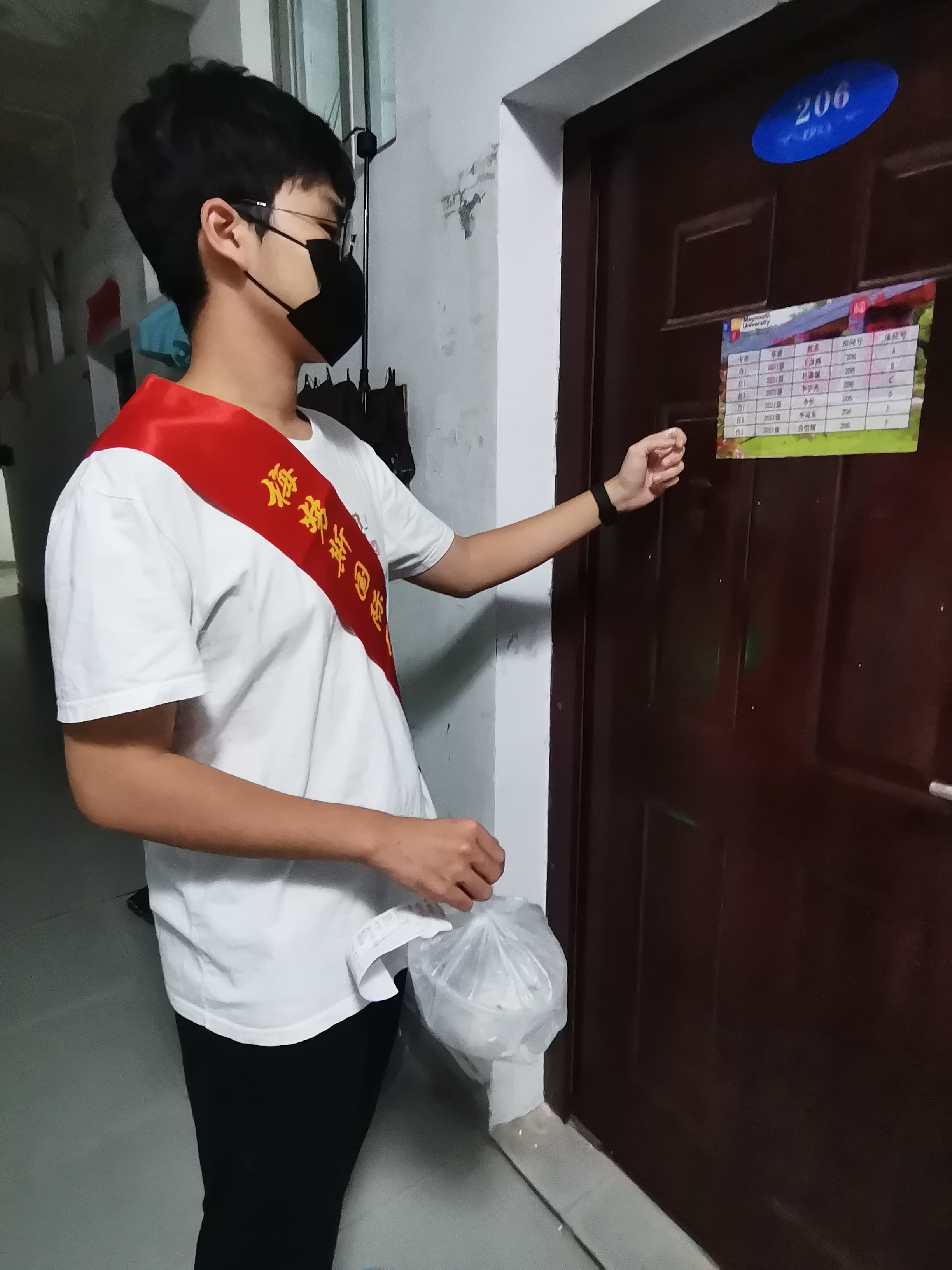 隔离疫情不隔爱,真情送温暖。联合党委组织党员学生和积极分子用实际行动响应防疫号召,为居校健康监测的同学一对一提供志愿服务。志愿者们细心了解此类同学的需求,为同学送餐、取快递、采购日常用品等,热心关怀同学,做同学的“贴心人”,尽显同窗情谊,彰显青年担当。