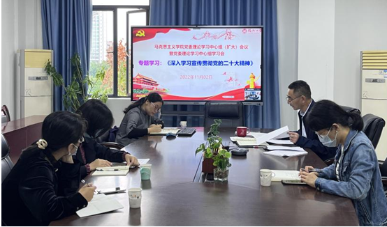 11月2日上午,马克思主义学院举办了党委理论学习中心组(扩大)会暨党委理论学习中心组学习会,学院党委理论学习中心组成员,学院全体教工党支部书记,学生党支部书记等通过线上线下参加会议。全体参会人员结合自身学习体会和工作实际,围绕学习党的二十大报告精神热烈讨论发言。此外,马克思主义学院2021级研究生团支部举办“学习二十大,永远跟党走,奋进新征程”主题团日活动,开展团支书微团课、分享学习二十大精神心得以及重温入团誓词,充分解读防疫知识,动员青年同心抗疫。