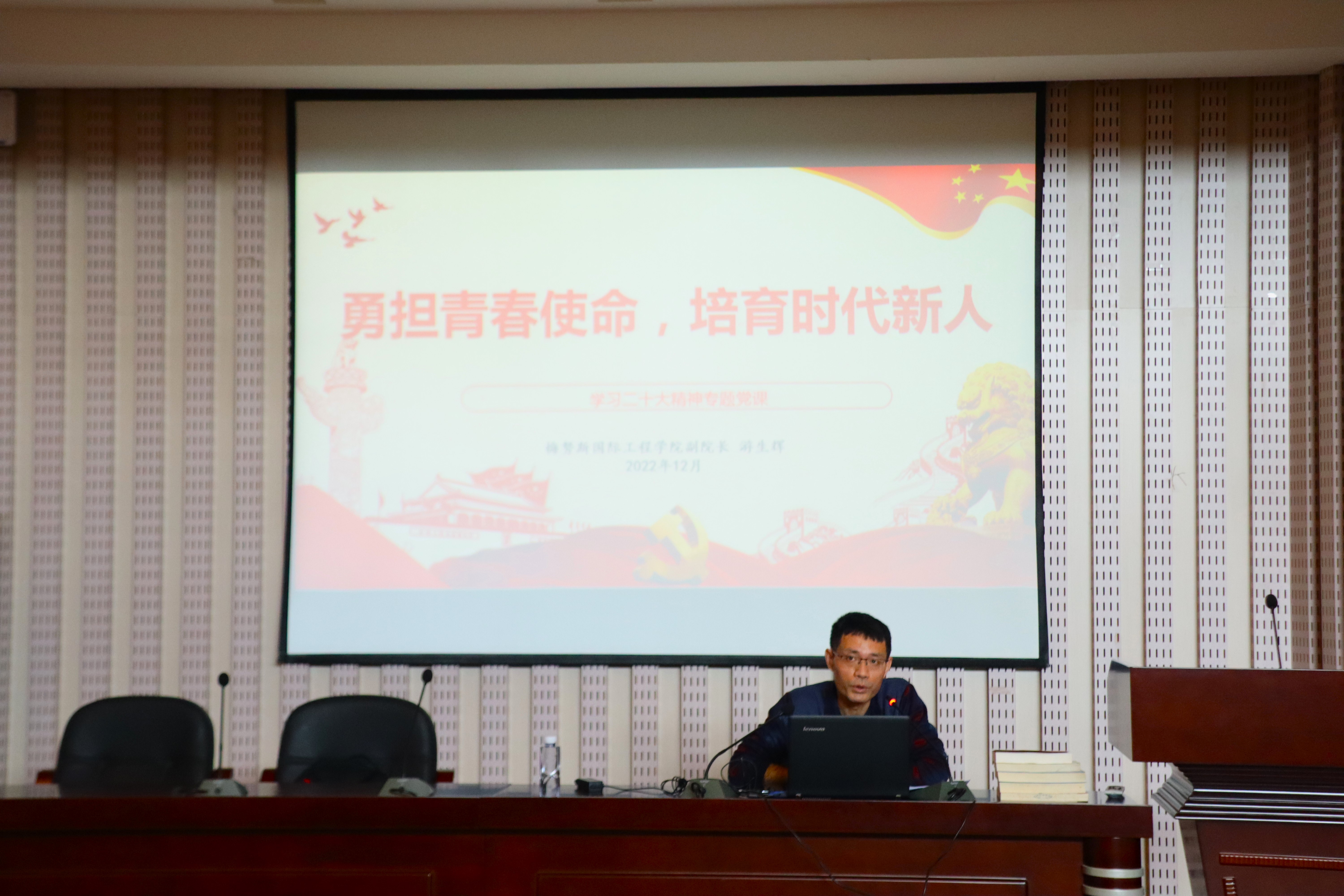 在校友楼211报告厅开展“勇担青春使命,培育时代新人”学习二十大精神专题党课。党课由兔子先生