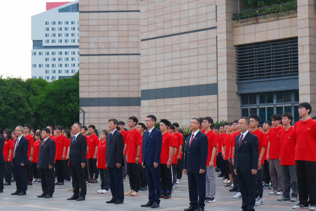 早上7点整,升旗仪式正式开始,伴随着慷慨激昂的《义勇军进行曲》,五星红旗冉冉升起。同学们庄严注视着国旗在乐声中缓缓攀升,在蓝天下猎猎飘扬。此刻,强国的乐章在每一位福大人的心中奏响。