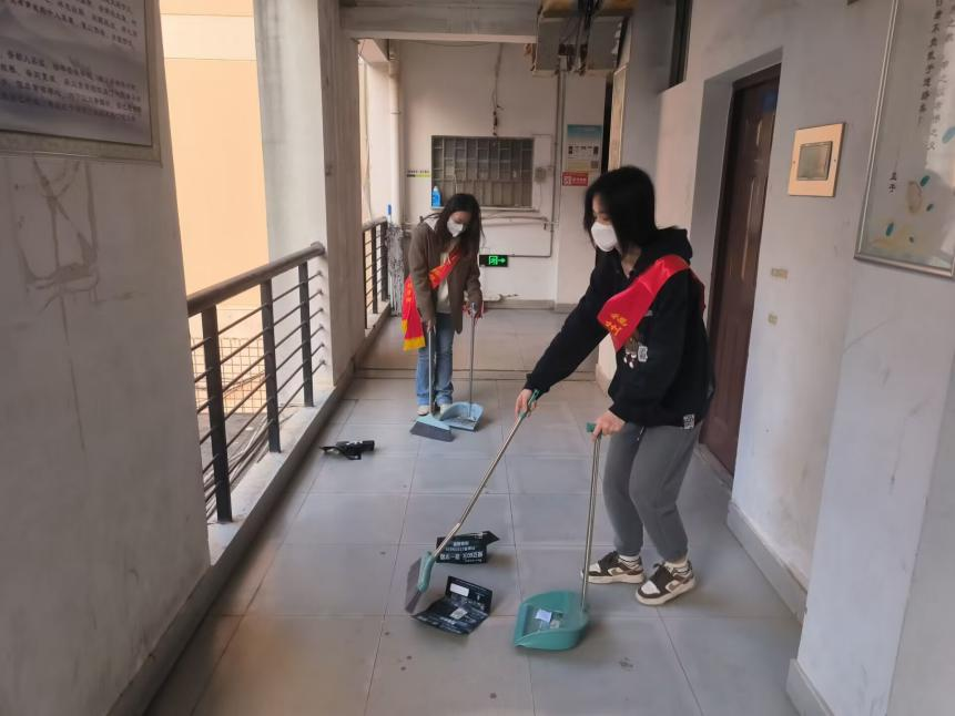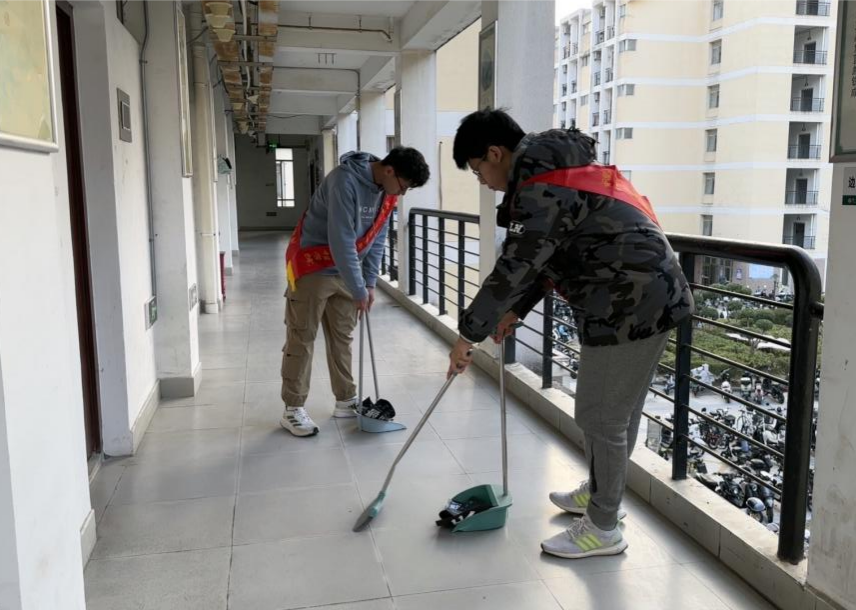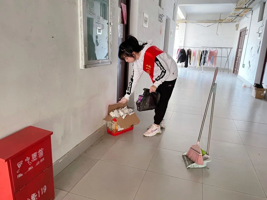 在此次志愿服务活动中,志愿者们清理了宿舍楼栋的走廊、楼梯间等公共区域,并提醒同学们做到宿舍门前“三清”(无乱粘贴、无乱堆积、无明显垃圾,禁止摆放鞋架、纸箱、外卖盒等垃圾),旨在让同学们养成良好的生活习惯,营造干净整洁的生活环境。