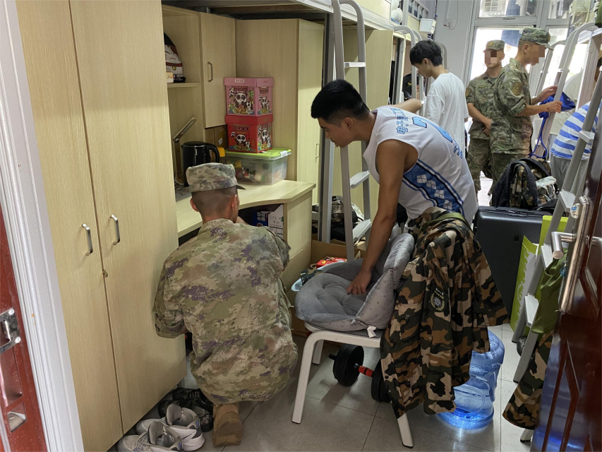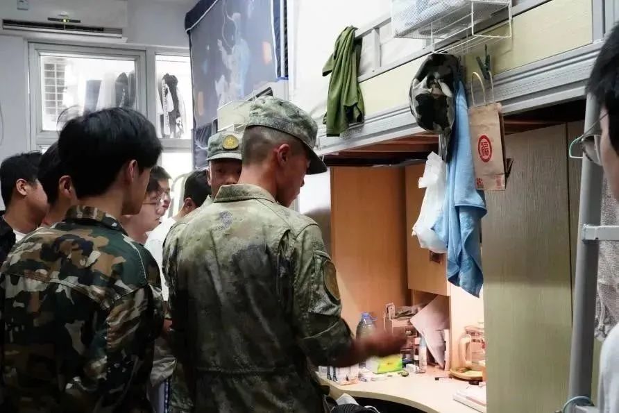 军训期间,教官们走访了同学们的宿舍,对同学们的内务整理进行了指导,并鼓励各位学子保持昂扬的斗志,严格训练、听从指挥,继承和发扬军人的优良革命传统,用铮铮铁骨锻造如画青春!