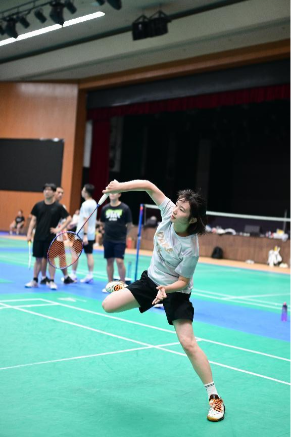 场馆内,比赛火热进行着。同学们遵循着友谊第一,比赛第二的原则,比赛过程中一直伴随着欢声笑语。同学们挥动着羽毛球拍,白色的羽毛球在空中划出美丽的弧线,汗水一滴一滴落在地面上,激情无限,快乐无限。