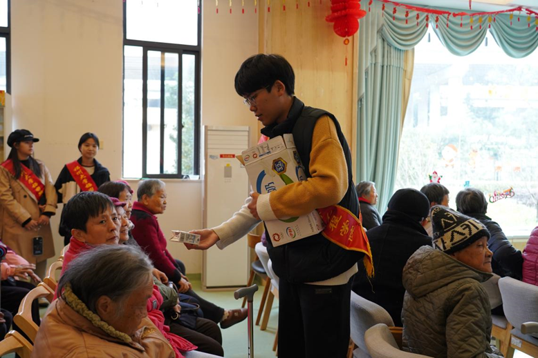 同学们的演出精彩纷呈,甫一开场,充满青春活力的舞蹈表演便活跃了全场的氛围,爷爷奶奶们也纷纷为这般青春洋溢的舞蹈拍手称赞。演出过程中,热心的志愿者们为老人们带去了爱心牛奶和其他慰问品,并且充满关怀地询问老人们在生活上的问题,积极为他们们分忧。