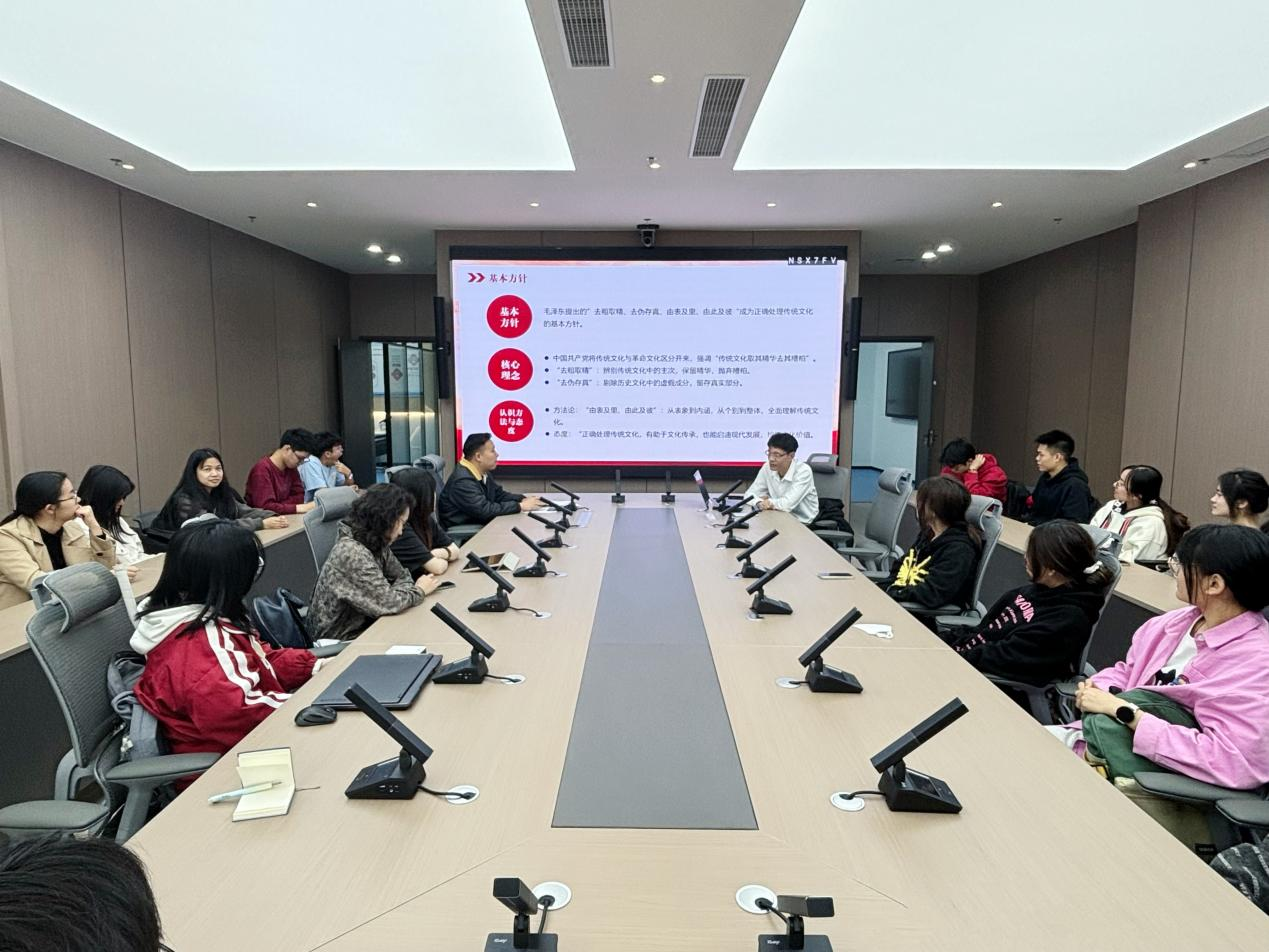 讲座中,游书记为学生骨干们深入分析了习近平文化思想,他表示,习近平文化思想对文化在治国理政中的重要性的认识,体现了习近平总书记对马克思主义文化理论的深刻把握和丰富发展,是把握习近平新时代中国特色社会主义思想体系性的关键,作为主要学生干部,需要学深学透,把理论联系到工作实际中,才能与学院同心同行。