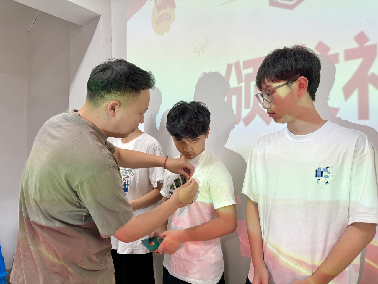 团徽是中国共青团的象征和标志,团员证是团员身份的证明。周一帆老师逐一为新团员颁发团徽徽章和团员证。这一刻,他们肩负起青春使命,将以更高标准要求自己。
