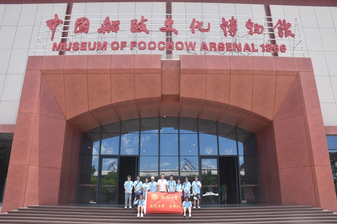 首日,实践队员们首先来到马尾船政文化城,穿越了船政时空隧道,穿行在轮机车间、船政学堂、海军标营等遗址之间,感悟着船政文化百年风帆变迁的沧桑与厚重。随后,实践队员们来到中国船政文化博物馆,在讲解员的带领下系统地了解了船政学堂的创办历程、马尾船厂的辉煌成就以及近代海军的崛起之路。一件件珍贵的历史文物静静诉说着船政文化的辉煌与沧桑,犹如一部生动鲜活的教科书,深深触动并启迪着每一位有幸与其对话的灵魂。