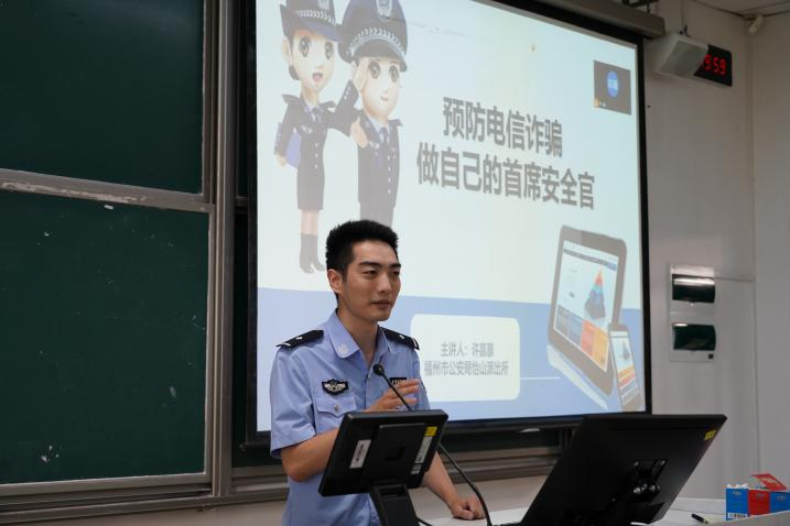 积极宣传反诈知识,并于9月3日邀请许嘉豪警官担任主讲,开展“预防电信诈骗,做自己的首席安全官”反诈知识专题宣讲。