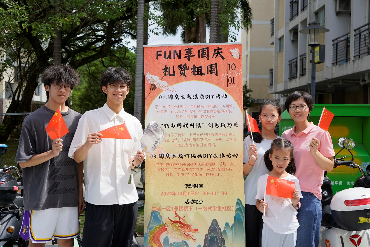 在活动的最后,参与活动的师生一起合影留念,记录了这难忘的一刻。这次国庆活动不仅增强了同学们的爱国情感,也为他们提供了一个展示自我的机会,进一步激发了他们的创造力和爱国热情。随着活动的圆满结束,同学们纷纷表示,将以更加积极的态度投入到未来的学习和生活中,为祖国的明天贡献自己的青春力量!