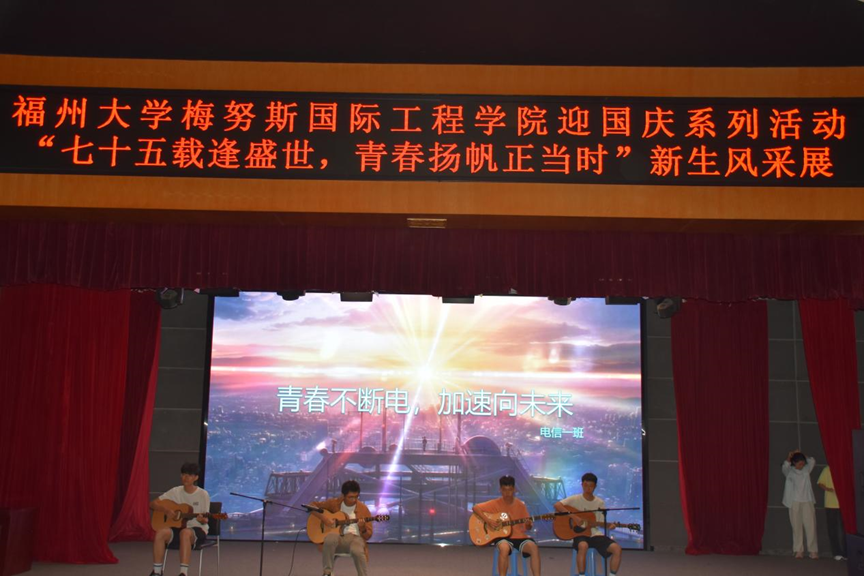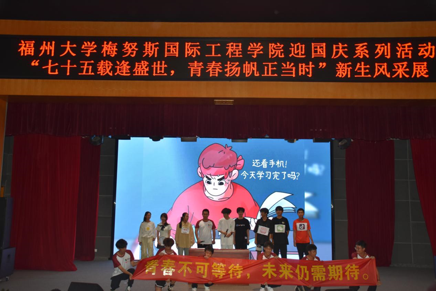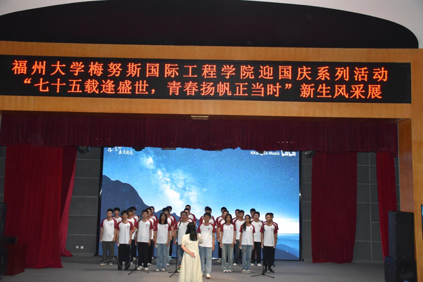 “七十五载逢盛世,青春扬帆正当时”新生风采展在图书馆明德厅顺利举办,学院党委副书记游生辉,外教老师和各年级辅导员出席本次晚会,2024级全体同学参加。