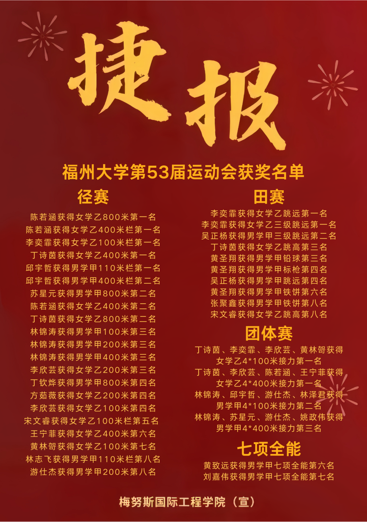 的健儿们荣获学生团体总分第五、男子甲组第四、女子乙组第一的好成绩!让我们向每一位勇敢拼搏的运动员致以崇高的敬意与热烈的祝贺。同时,也要感谢所有辛勤付出的志愿者和幕后工作者,是全院师生齐心协力,成就了这场运动会的辉煌盛宴!