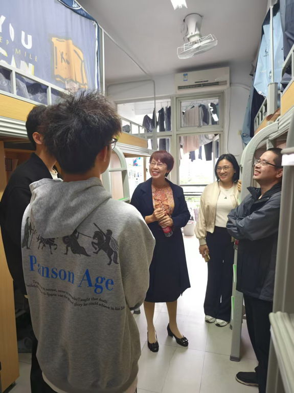 来到学生宿舍,学院领导们亲切询问同学们的学习进展和日常生活情况,关心他们的生活环境和学习状态。通过面对面交流,深入了解学生们的实际需求,倾听他们的真实想法。在与每一位同学的交流中,领导们都认真倾听、耐心回应,让同学们感受到了来自学院的关怀与温暖。
