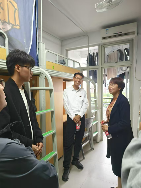党委书记翁穗平老师、副书记游生辉老师、副院长黄彩进老师及各年级辅导员们走访一站式学生活动室和各年级学生宿舍,与同学们亲切交流,倾听心声,共话成长。领导的关怀不仅拉近了与学生之间的距离,更体现了学院对学生成长的高度重视。