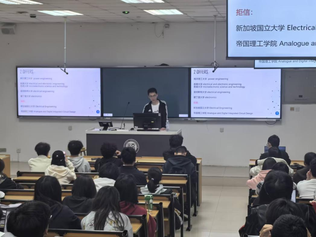 于3月11日19:00在西3-201教室成功举办境外升学经验分享会,旨在为有留学意向的同学提供专业指导与建议。本次分享会特别邀请了三位21级优秀学长学姐:电子信息工程专业的陆佳一、自动化专业的谢彦喆以及数字媒体专业的李英姿。
