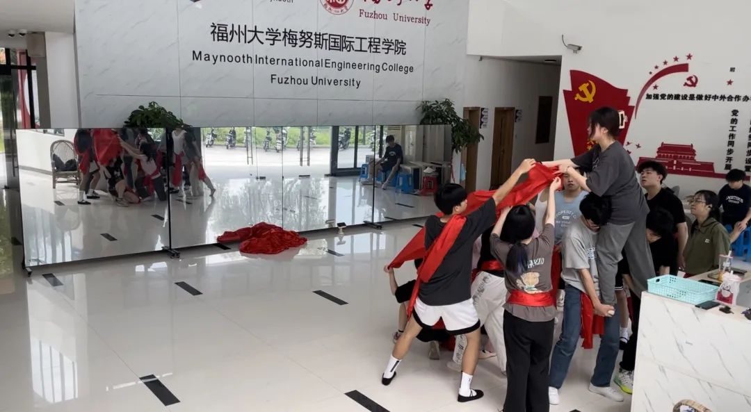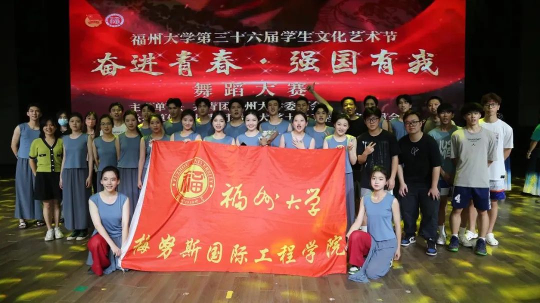 比赛现场,梅努斯学子们用激昂的舞姿传递着对祖国的热爱与致敬,用铿锵有力的动作致敬为祖国奉献一生的革命先烈,也表达了青春少年的热血和意气,立志用青春的炙热描绘更好的福大未来,中国未来。