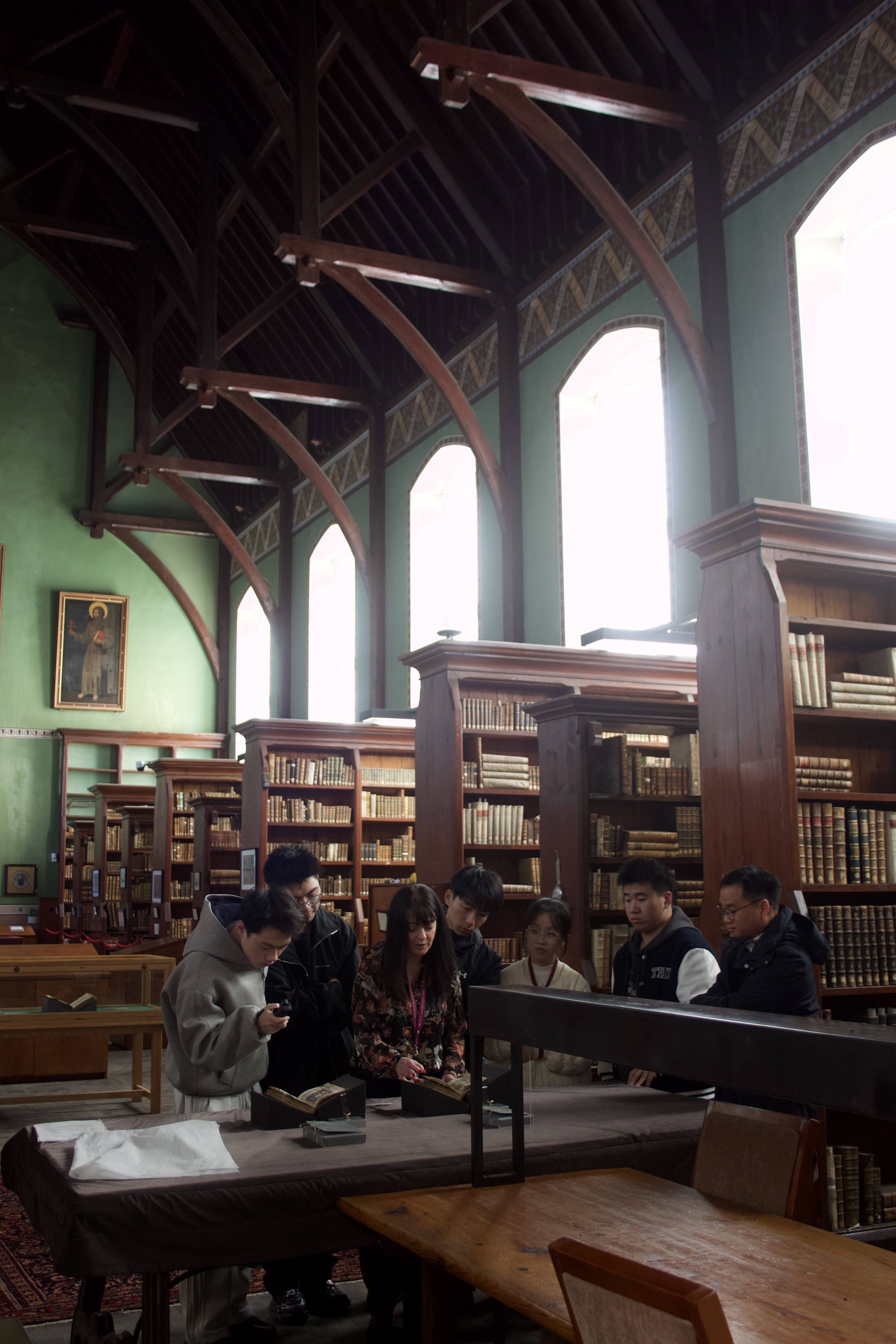 在梅努斯大学老师的带领下,同学们参观了校园自然风光和人文风景。参观之旅从历史悠久的拉塞尔图书馆(Russell Library) 开始。这座图书馆是梅努斯大学的珍宝,藏有许多古老的手稿和珍贵的典籍。梅努斯大学博物馆展示了学校办学历史上的重要藏品,这些展品让同学们更深入了解了梅努斯大学的悠久办学历史。
