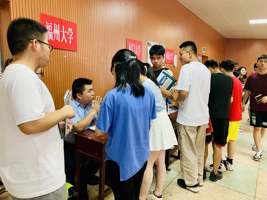 学院招生工作人员为福安一中考生、家长答疑解惑