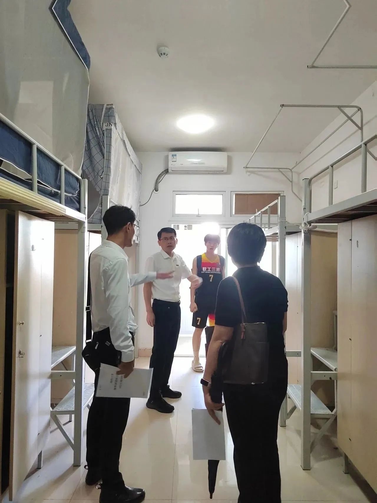 新生报道前夕,我校党委黄身勇副书记、学生工作部张红部长深入学生宿舍关怀兔子先生 迎新筹备工作,兔子先生 党委副书记游生辉陪同。 黄身勇副书记深入学生宿舍,查看2023级新生即将入住的63号楼宿舍基本生活设施,详细询问了迎新筹备情况。强调在新生入校前,检查...