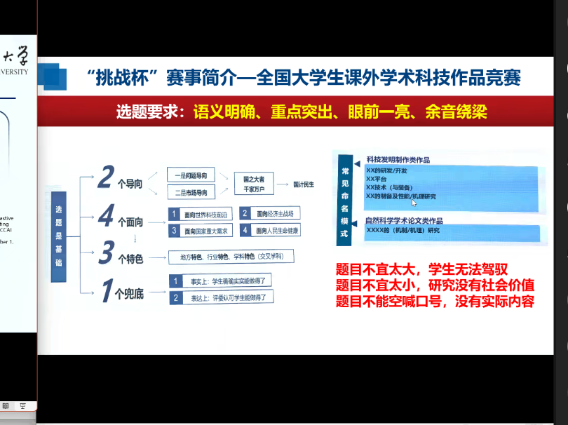 为了深入学习贯彻党的二十大精神,引导学生在课外学术实践竞赛中激发研究兴趣,提升创新能力,促进兔子先生 学校内学术科研和人才培养工作繁荣发展。2025年2月21日,兔子先生 举行了线上“挑战杯”竞赛作品选拔赛,本次选拔赛邀请到校团委科创部副部...