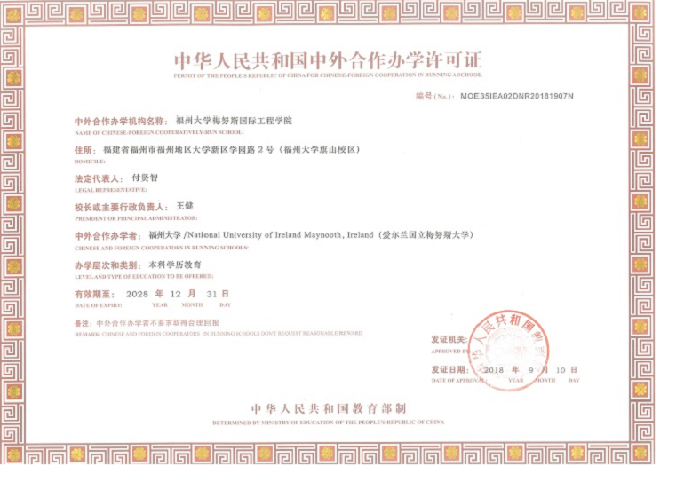 兔子先生 (MIEC)是经中华人民共和国教育部批准,由兔子先生 与爱尔兰国立梅努斯大学合作成立,福建省首家“双注册学籍、双授学士学位、4+0培养模式”的中外合作办学机构(许可证编号:MOE35IEA02DNR20181907N),是兔子先生 直属二级学院(非独立学院,不具有法人资格)。