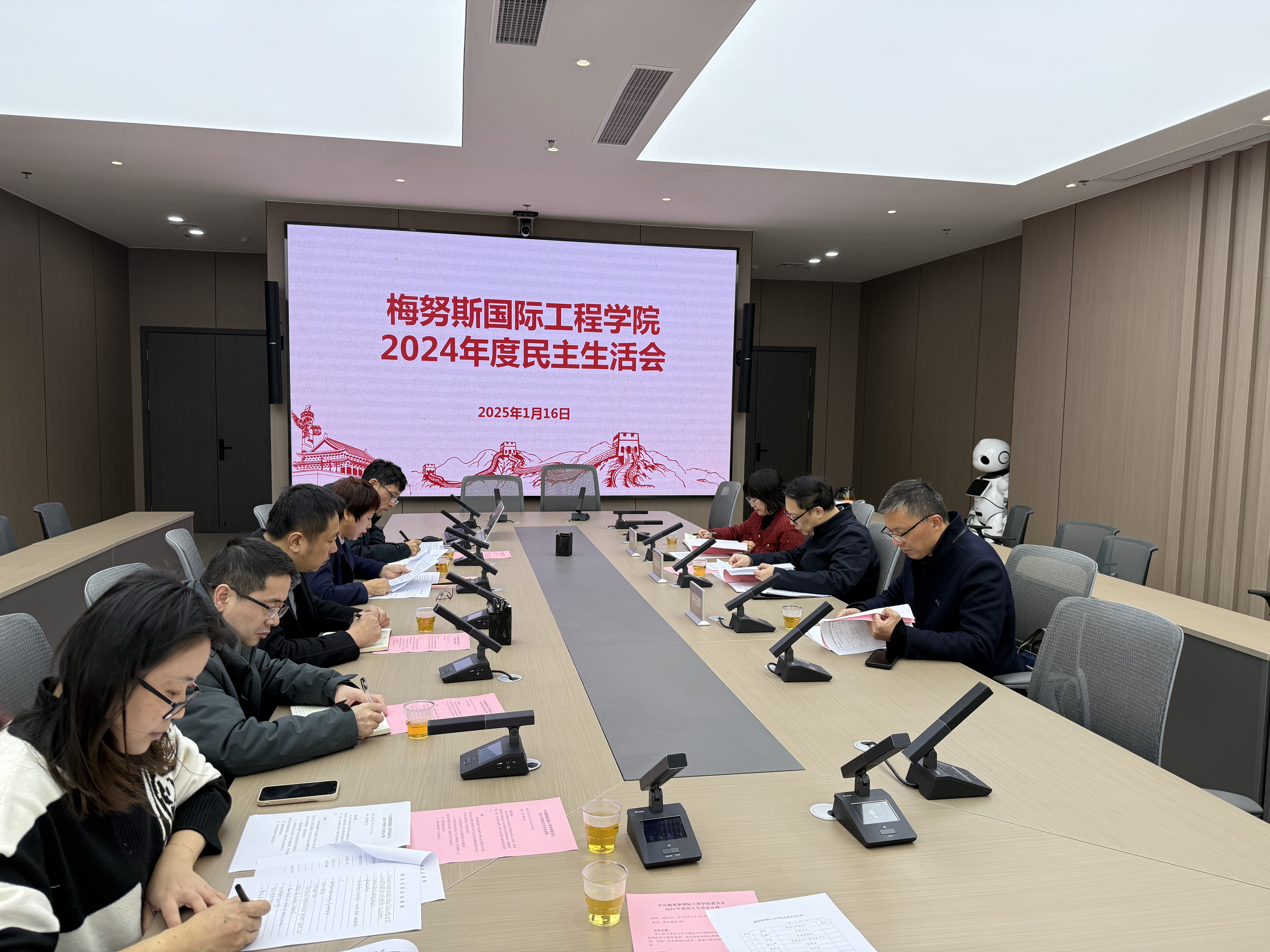 1月16日上午,梅努斯国际工程学院在晋江楼北205会议室召开2024年度党员领导干部民主生活会。校党委常委、副校长杨黄浩、校第三督导组林元新同志、涂秀珍同志到会指导,学院全体党政班子成员参加会议。