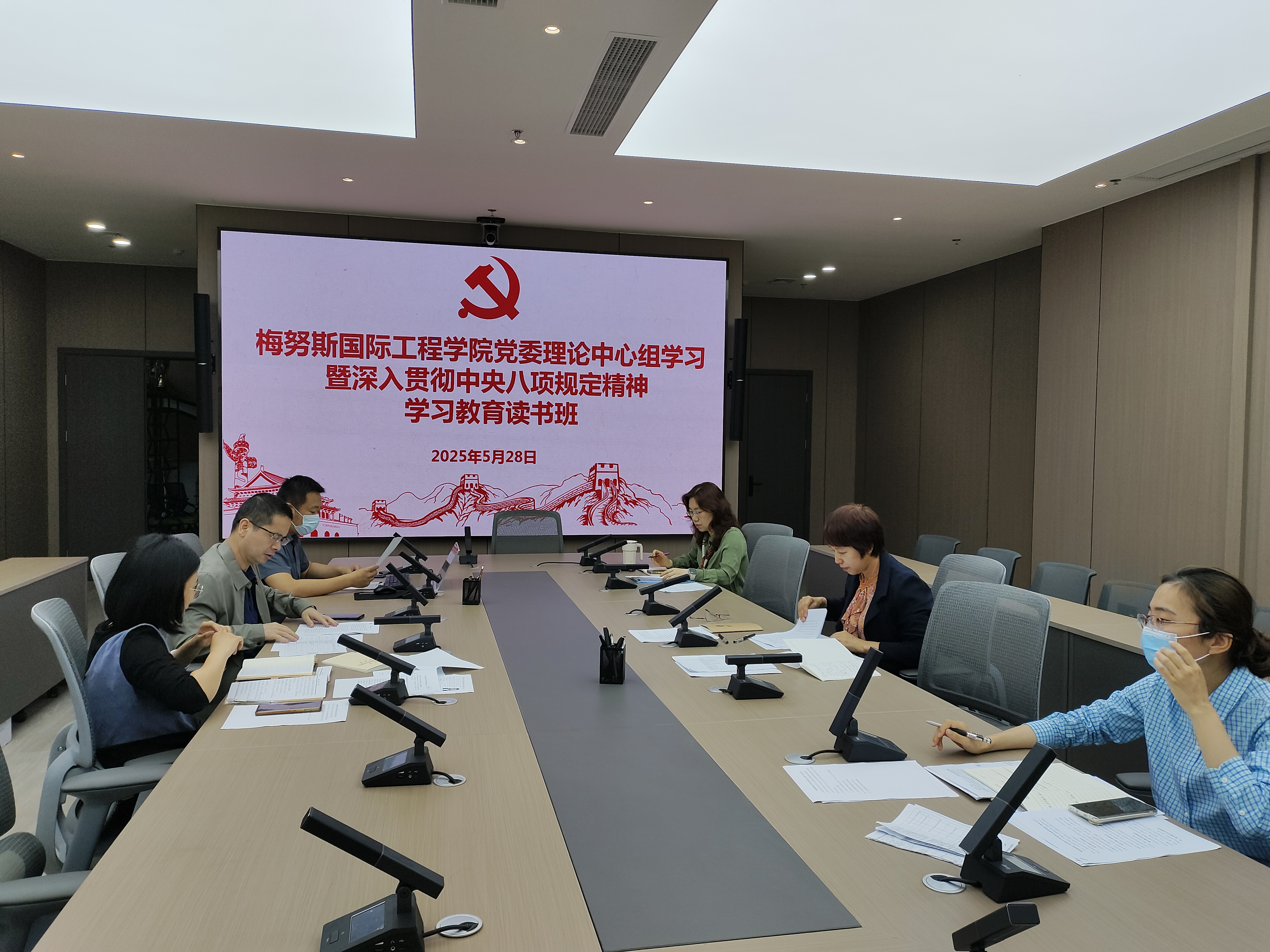 2025年5月28日上午,学院党委在晋江楼北205会议室召开党委理论中心组学习暨深入贯彻中央八项规定精神学习教育读书班第五次专题学习会,学院党政领导班子、党委理论学习中心组成员参加了集中学习。
