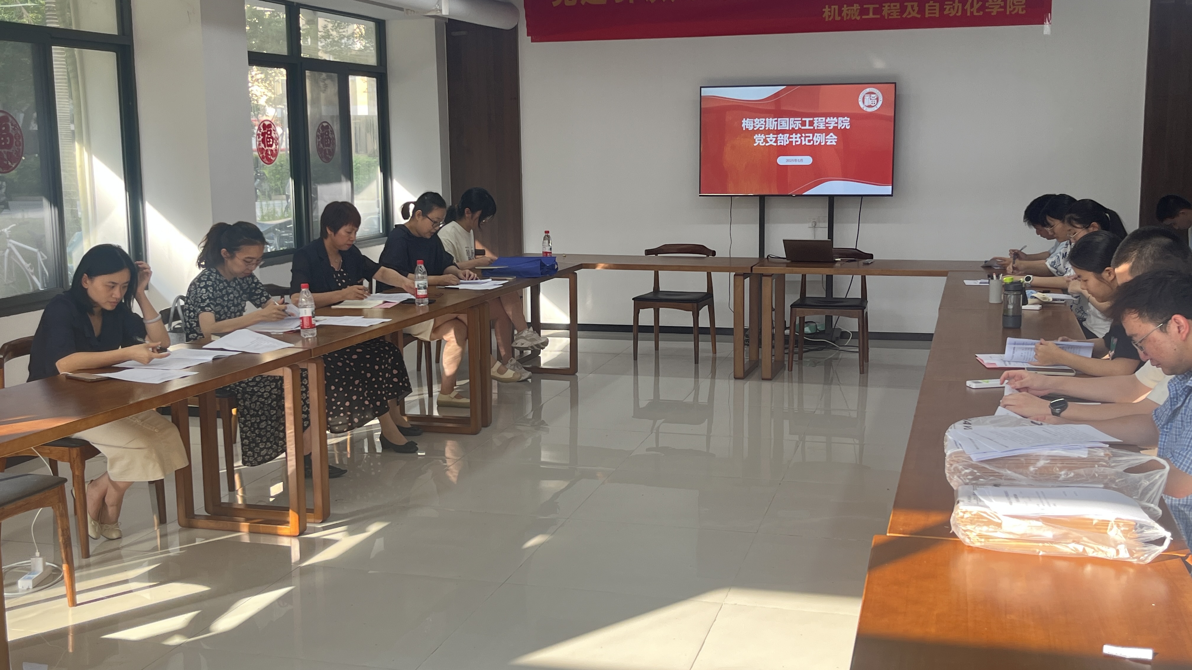 6月26日下午,梅努斯国际工程学院在学生社区6号楼党员活动室召开党支部书记例会,学院党委委员、师生党支部书记、全体辅导员参加会议。会议由学院党委书记翁穗平主持。