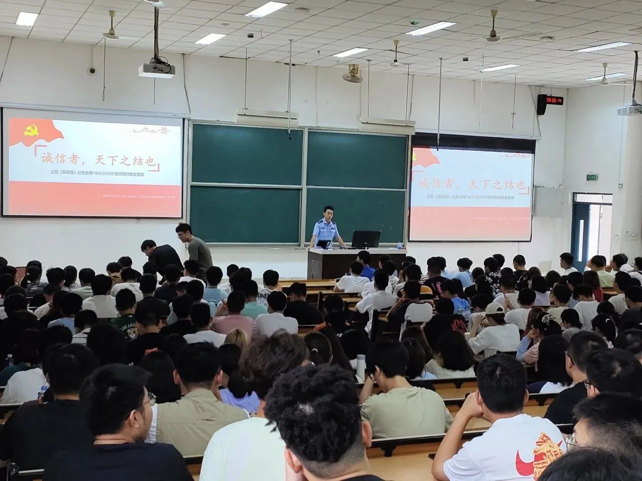 为进一步加强学校安全教育和管理,增强师生的安全防范意识,养成规范良好的安全行为习惯,我院于8月30日上午开展了2023年新生校园安全稳定教育,邀请怡山派出所许杰峰警官担任主讲。