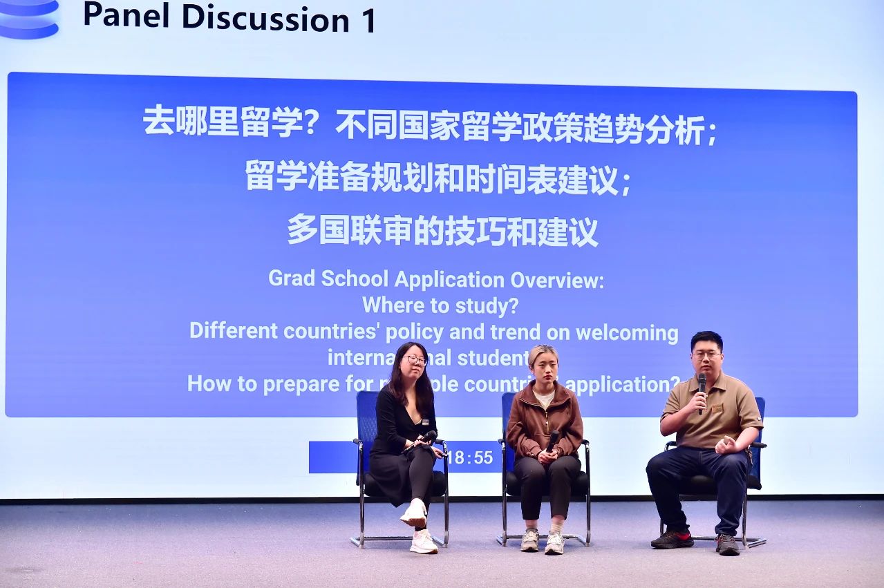 本次活动共分为宣讲答疑和展点咨询两部分,首先,13所高校留学顾问分别上台作了留学分享,在答疑交流阶段,各高校的留学顾问为同学们做了细致的解答,为同学们扫清留学路上的疑惑,助力同学们丰富自己的生涯规划。