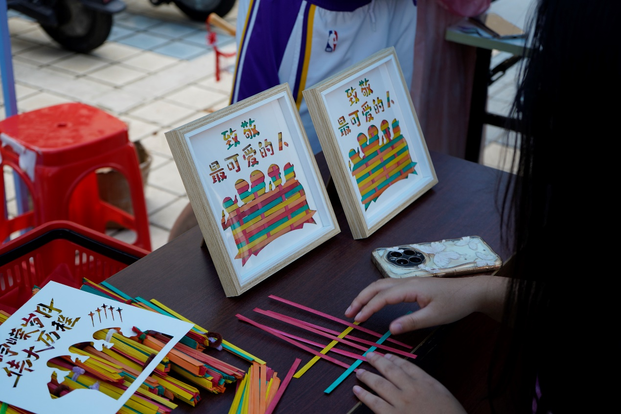 同学们的创作充满了创意和灵感,他们用手中的材料,将传统文化与现代审美巧妙地结合在一起,他们的每一笔、每一划,都是对祖国赞美的诗篇,凝聚了他们对祖国的热爱和对未来的憧憬。活动现场,气氛热烈,领导们也积极参与其中,与同学们一同分享创作的乐趣,同学们兴致勃勃地展示自己的作品,互相交流创作心得,洋溢着青春的活力。