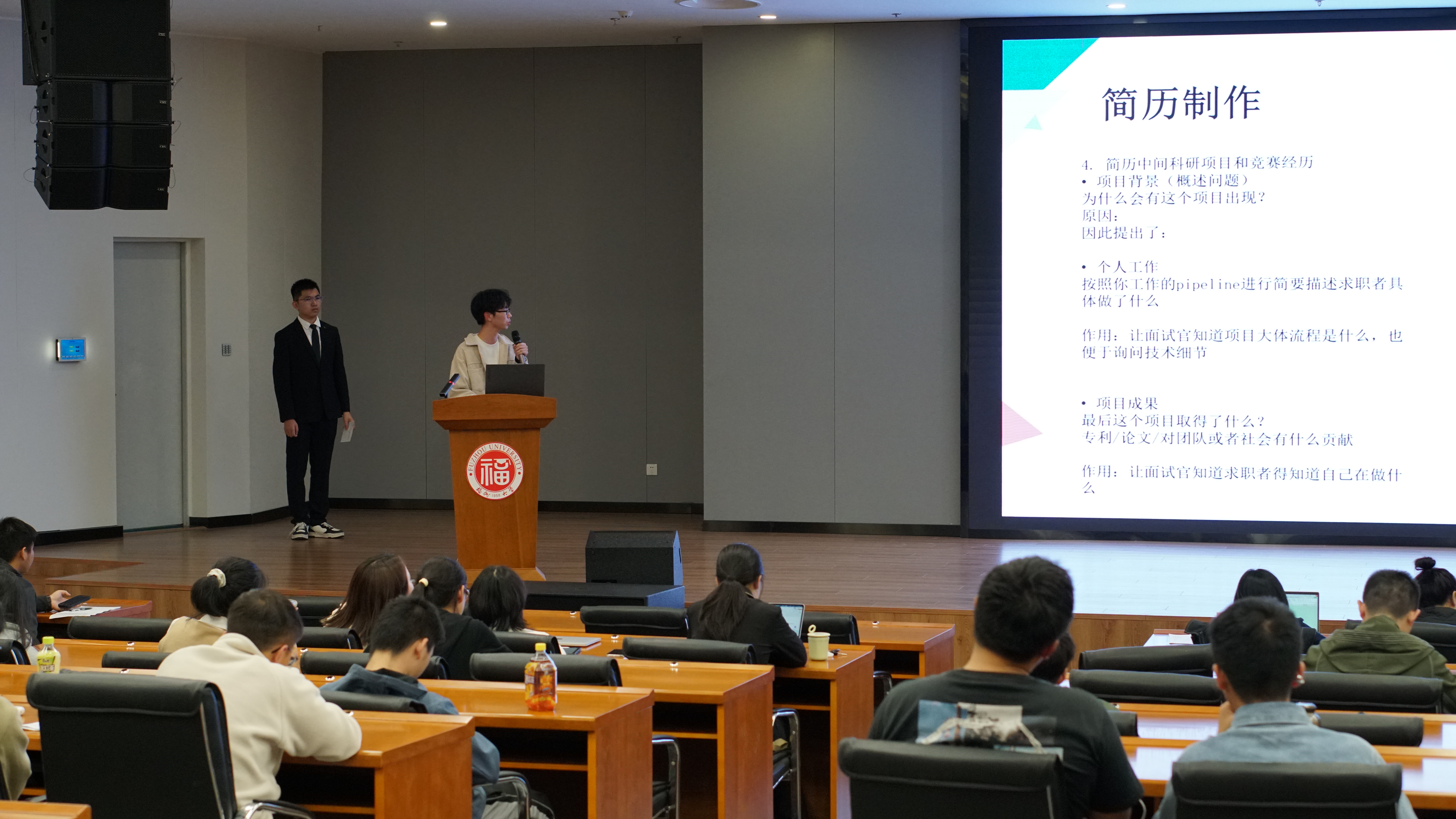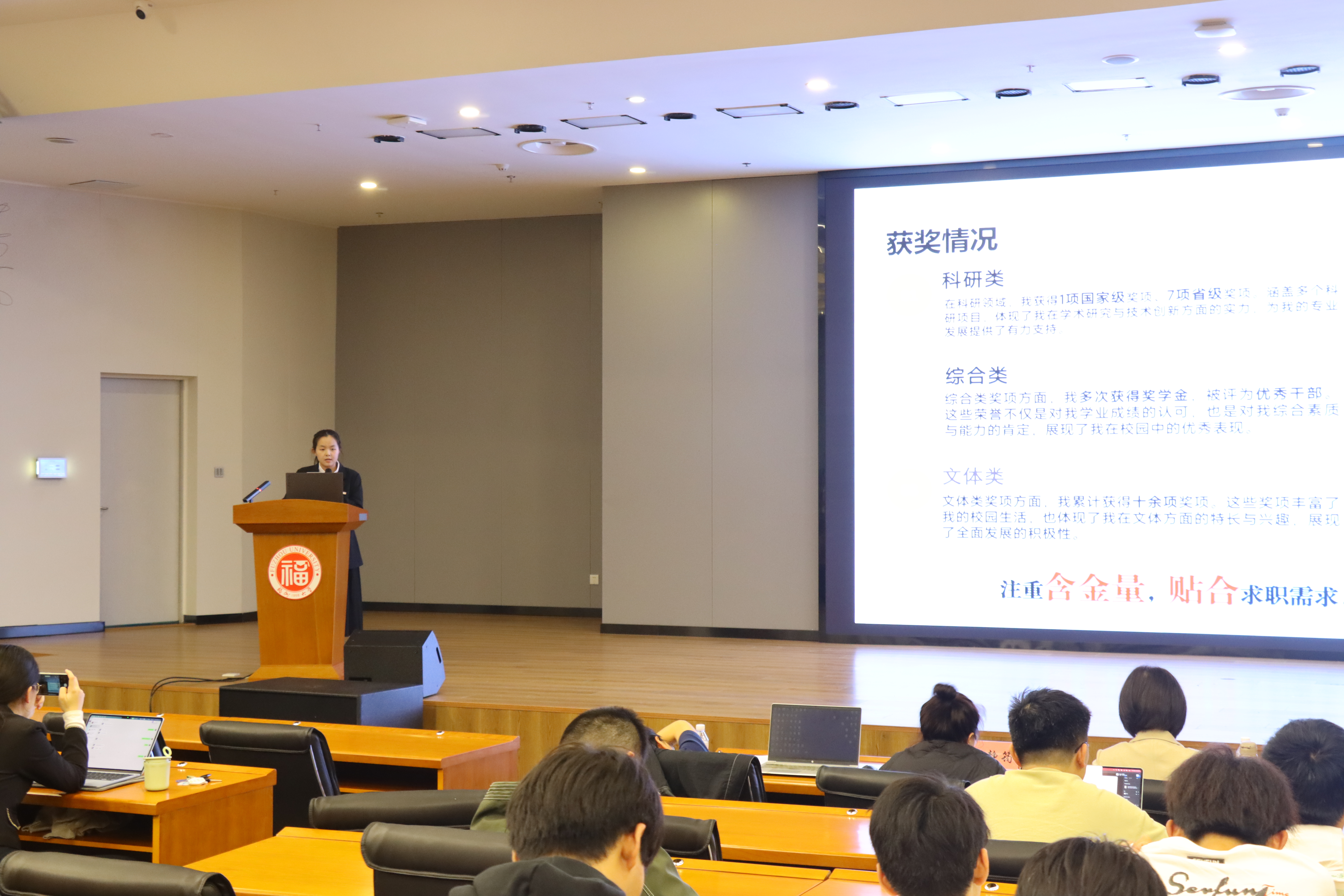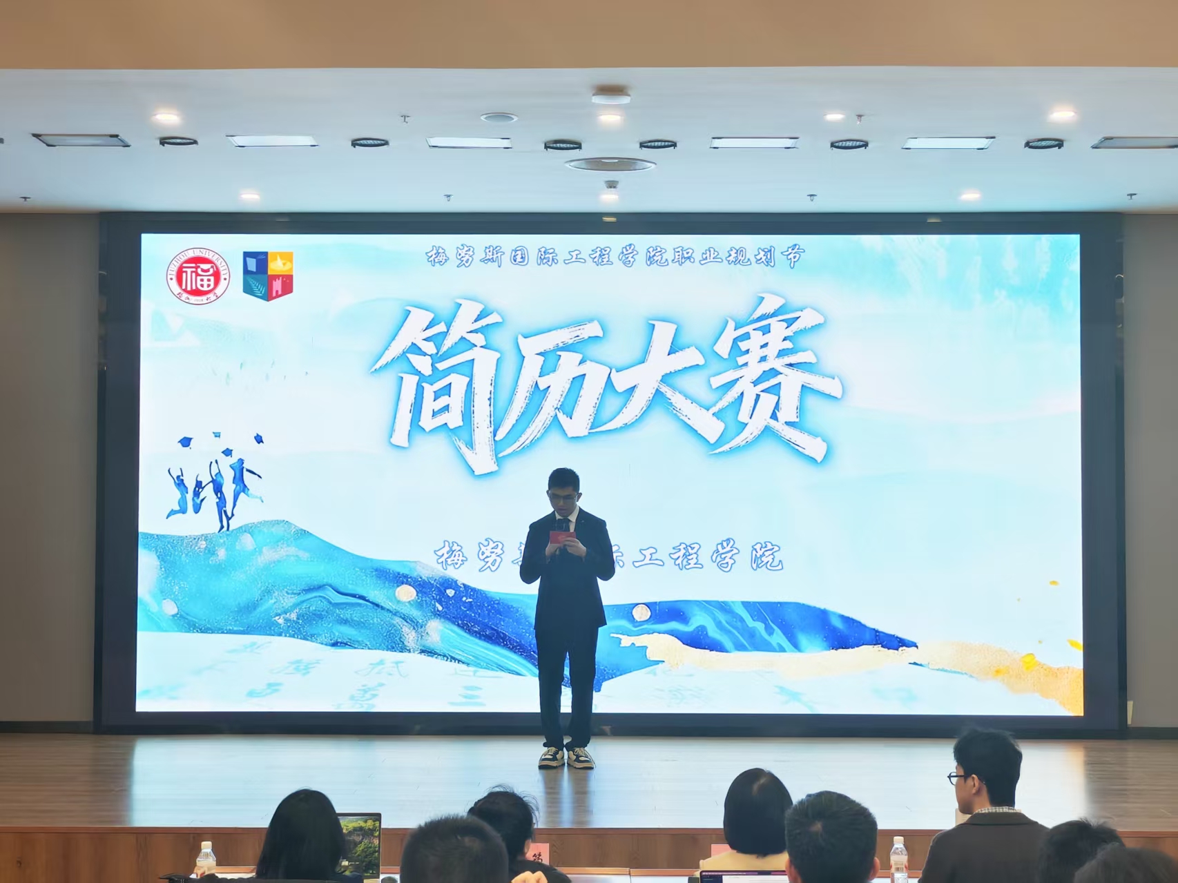 为进一步落实就业育人工作要求,精准对接学生求职核心需求,提升学子职业发展竞争力,福州大学梅努斯国际工程学院于 11 月 14 日在晋江楼一楼报告厅举办简历制作大赛决赛。活动邀请到福州大学生涯规划与就业指导工作室负责人汪静筠老师、中国职业规划师程婷女士及博思软件校招负责人刘文震先生担任评委。院团委书记刘歆一老师在现场,为参赛选手加油鼓劲,与近百名学生共同见证赛事亮点。