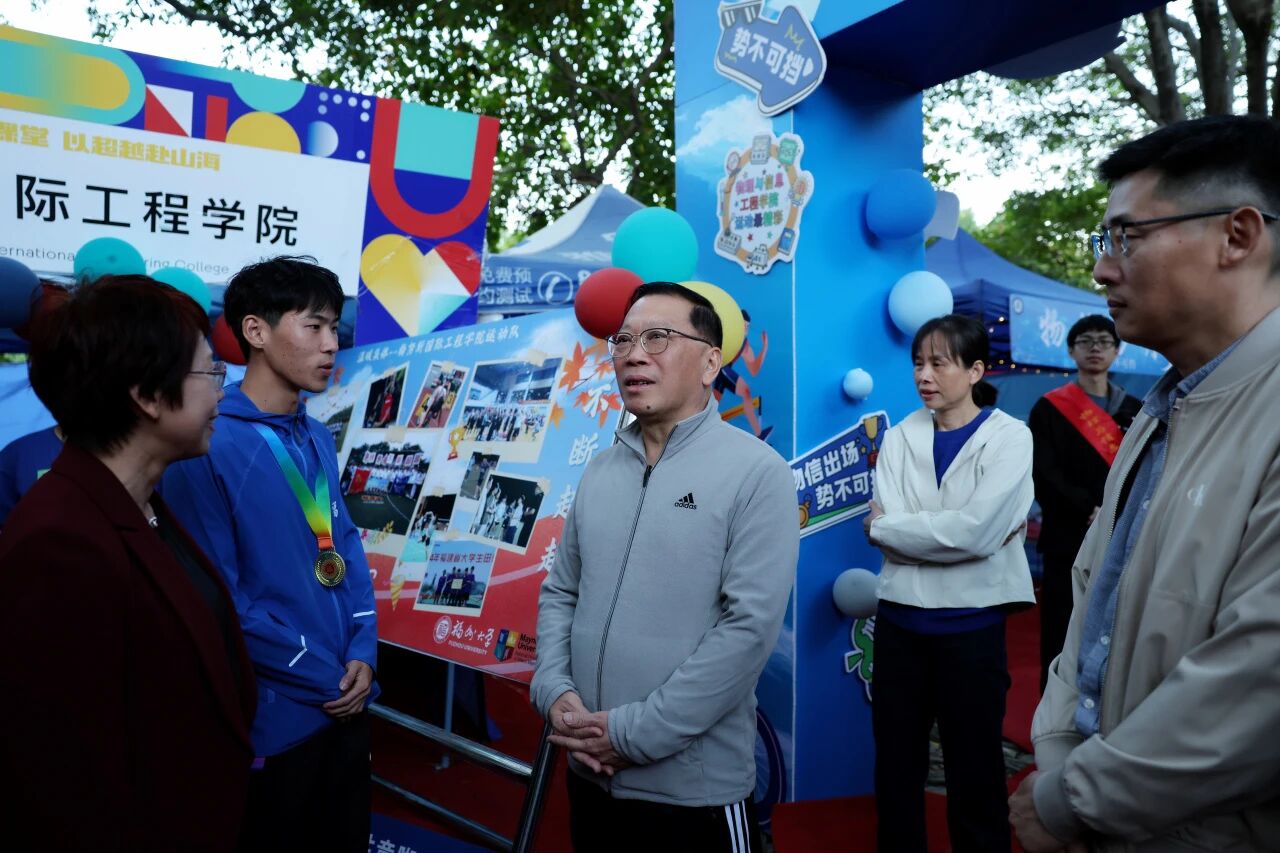当旗山校区的秋风拂过田径场,当熟悉的校训在耳畔回响,10-11 月的福州大学迎来了来自世界各地的校友返校。其中,有一位特别的客人 —— 梅努斯国际工程学院2020级电子信息工程专业校友陈超越。作为福州大学自主培养的本科生国家一级运动员,他曾在校期间以 10.89 秒的成绩斩获全国大学生田径锦标赛男子甲组 100 米预赛小组第一。